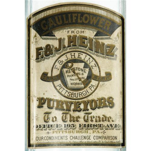 <B>Large F. & J. Heinz Cauliflower Jar.</B></I> An early Heinz jar with a perfect paper label, measuring 11.75" tall, with a slight blue tint to glass, in extraordinary condition. The condition and unique design of this jar make it a prime candidate for display.<BR><BR><b>Shipping:</b> Large Art Glass (<a target="_blank" href="http://www.heritageauctions.com/common/shipping.php">view shipping information</a>)