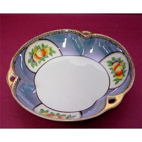 Lovely Noritake fancy large hand painted bowl - Decorated with gorgeous hand painted fruits separated with beautiful blue lusterware background hand in Art deco style - Stamped with well known Noritake green mark - Very good condition - Free of damage - Measures about 7 1/4" in diam. and 1.5" high - Buyer to pay 7.00 for ship. - Thanks!