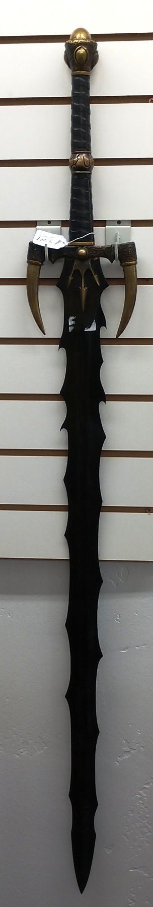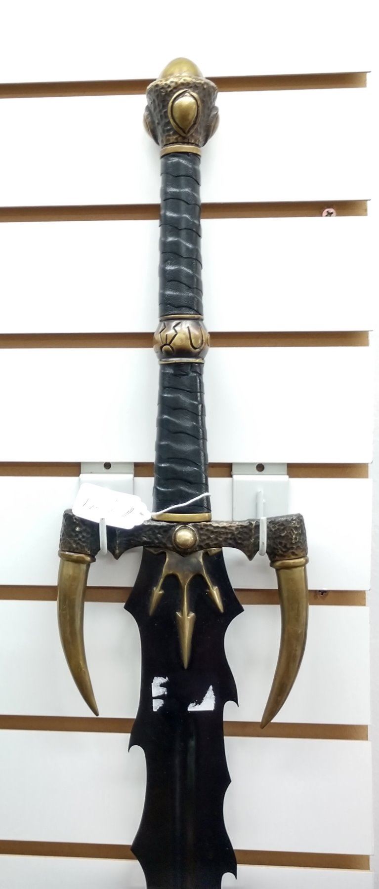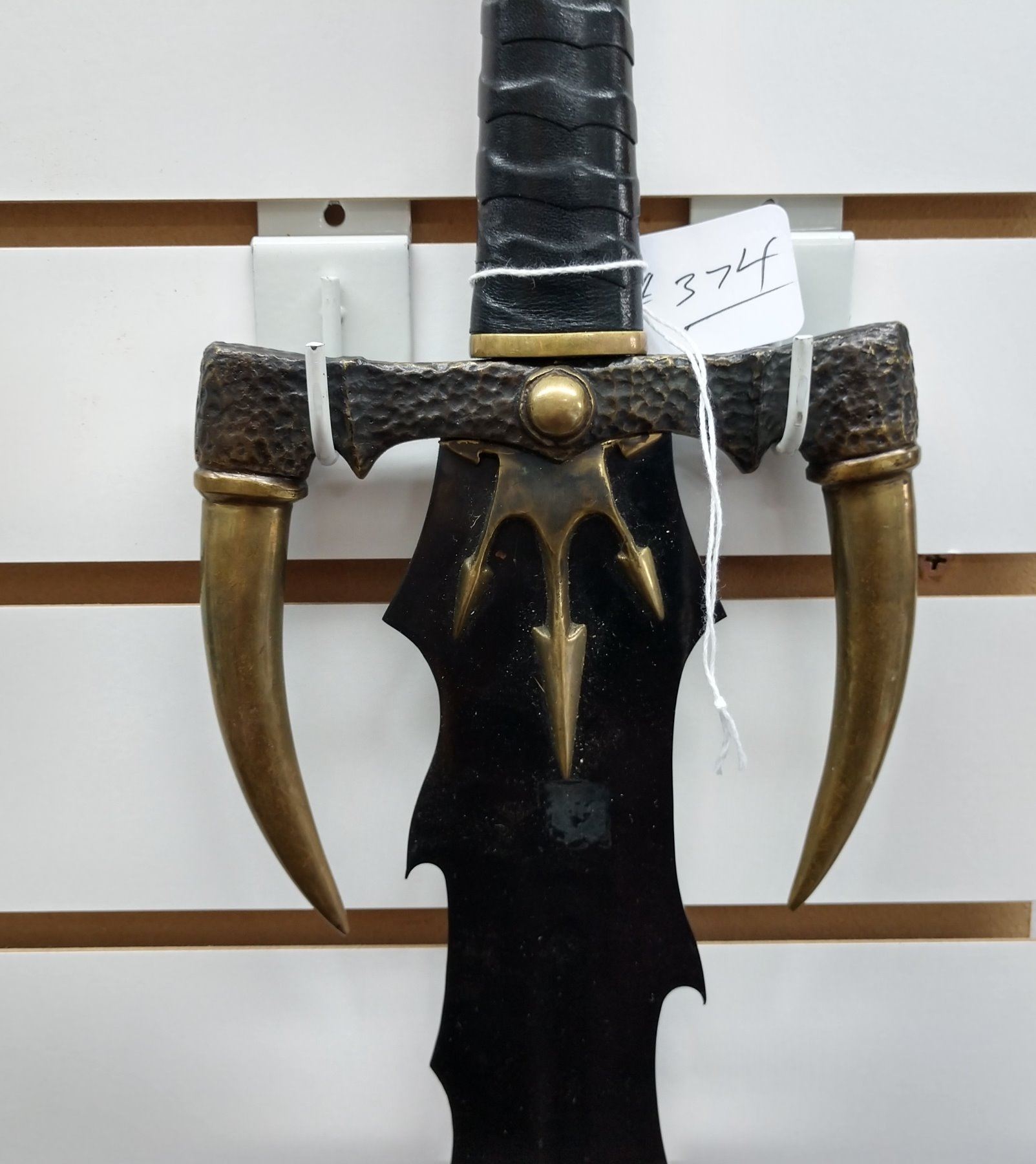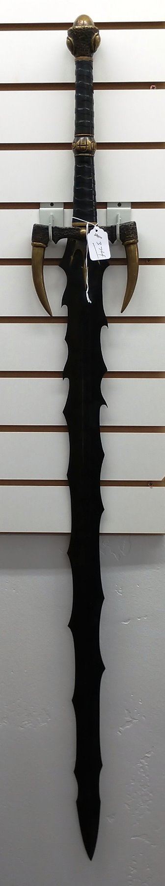 Large Fantasy Sword, 20th century item. Made of bronze and steel, the item measures 48" x 5 1/2" x 2". Hollywood, California. Made for a Conan film. Condition: Good, see images. Shipping: $60.00 USA estimate only, due to size and weight, w/insurance and signature.