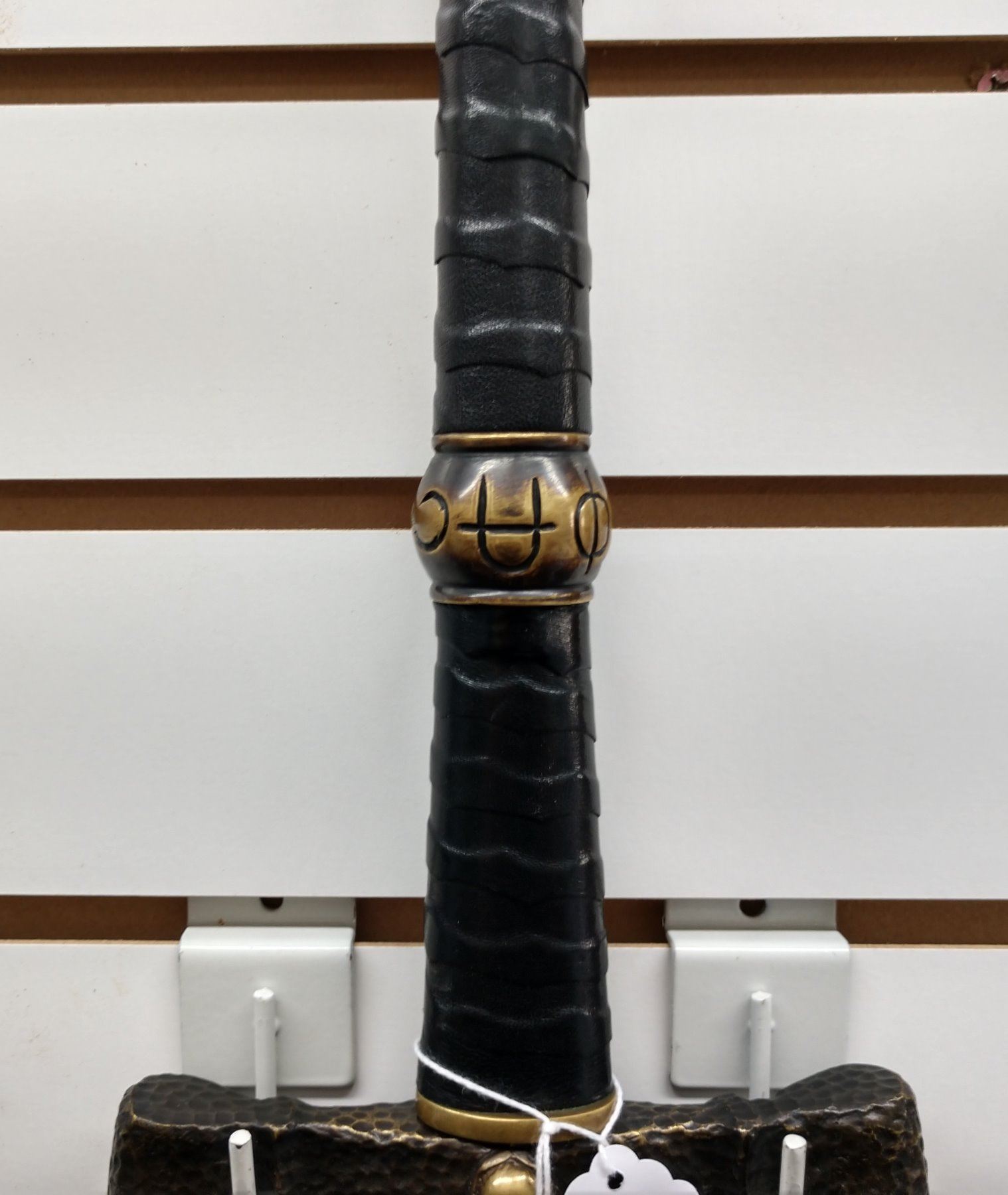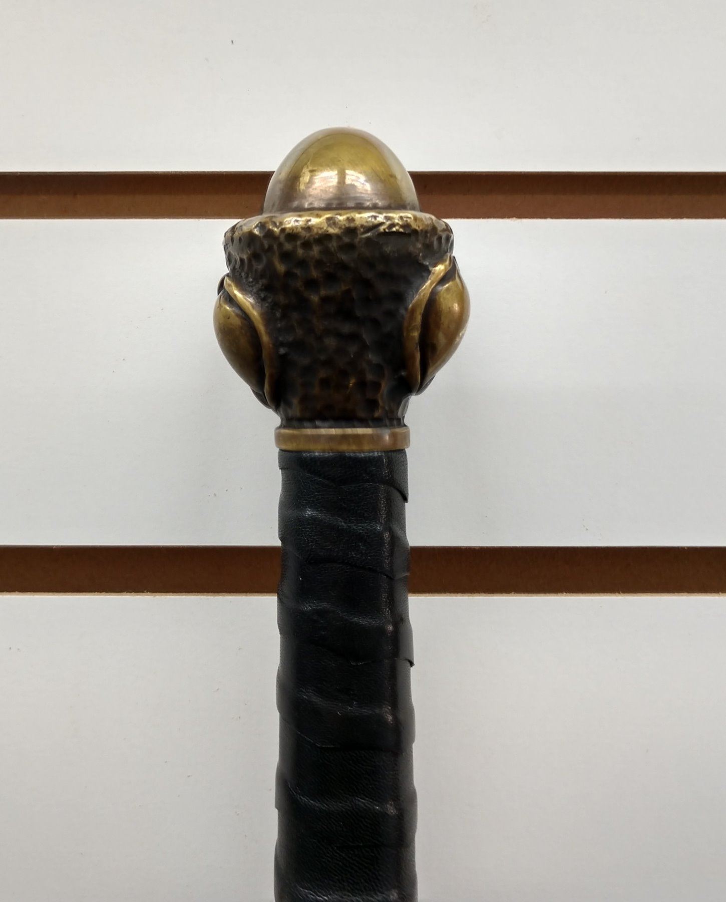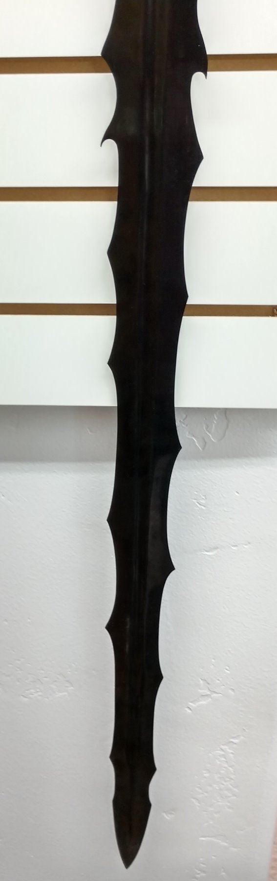 Large Fantasy Sword, 20th century item. Made of bronze and steel, the item measures 48" x 5 1/2" x 2". Hollywood, California. Made for a Conan film. Condition: Good, see images. Shipping: $60.00 USA estimate only, due to size and weight, w/insurance and signature.