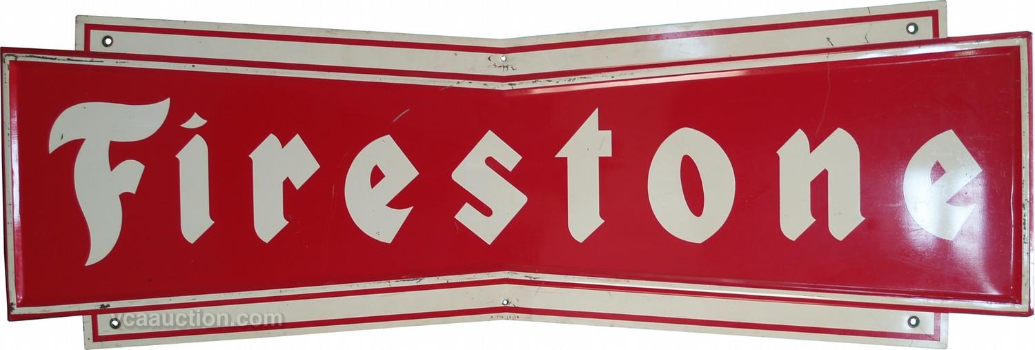 Large "Firestone" Trademark Embossed Die-cut Tin Sign - 71" x 24"