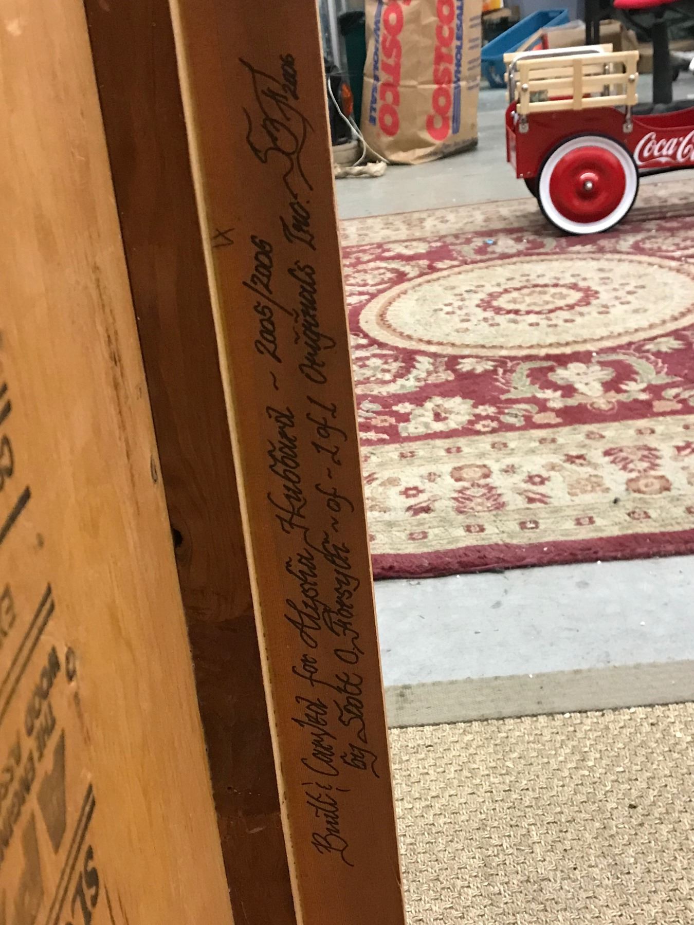 21" x 42" x 22" tall. Carved in 2006 Scott O. Forsythe of 1 of 1 Originals Inc. Carved signature on the bottom.
