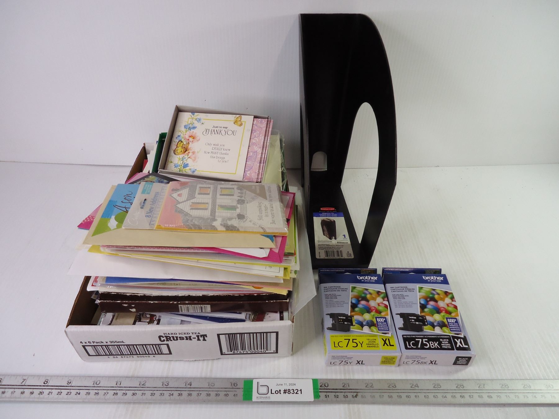 Large Flat of Assorted Greeting Cards, Some Christmas,(2) Ink Cartridges and Magazine File
