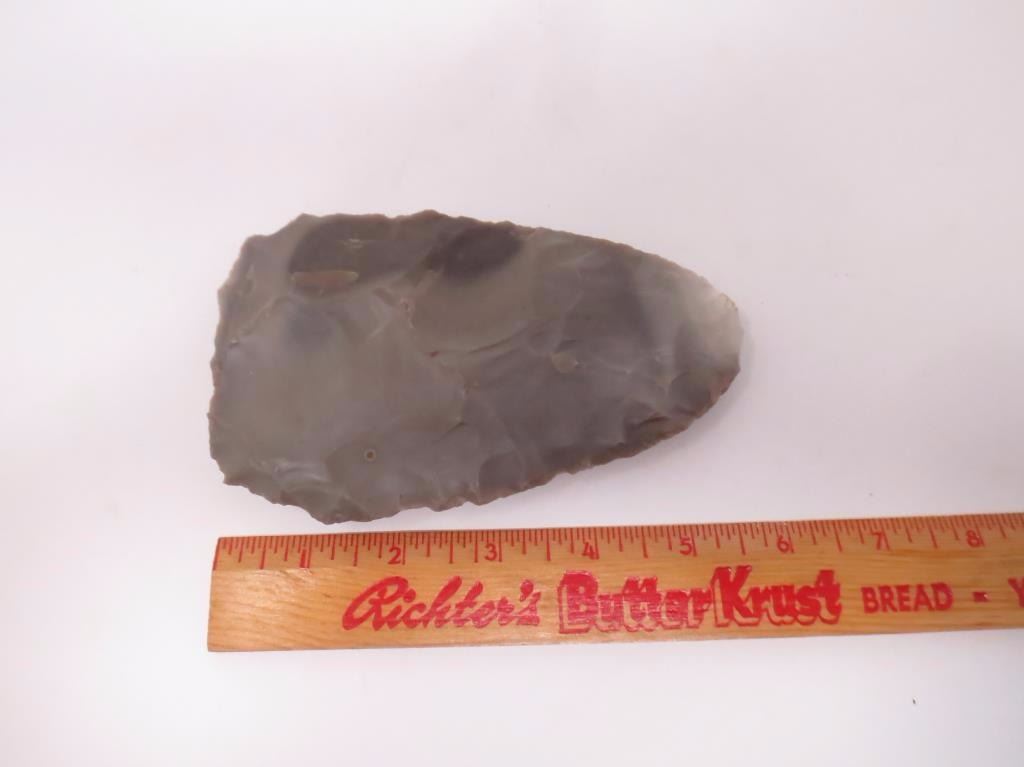 found in Waco, Texas. It is about 6x3.5". Grey flint. No damage.