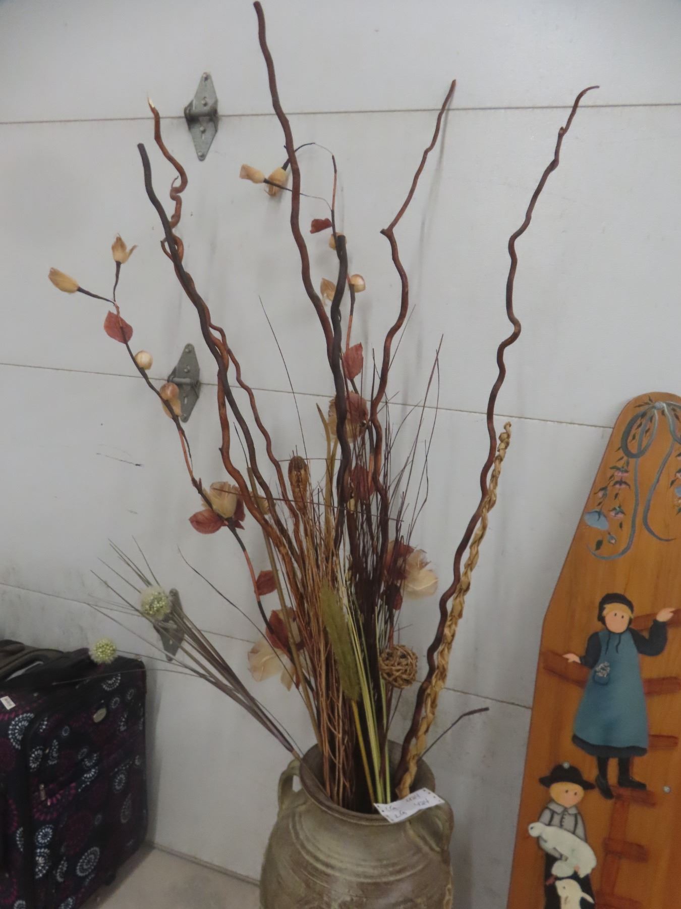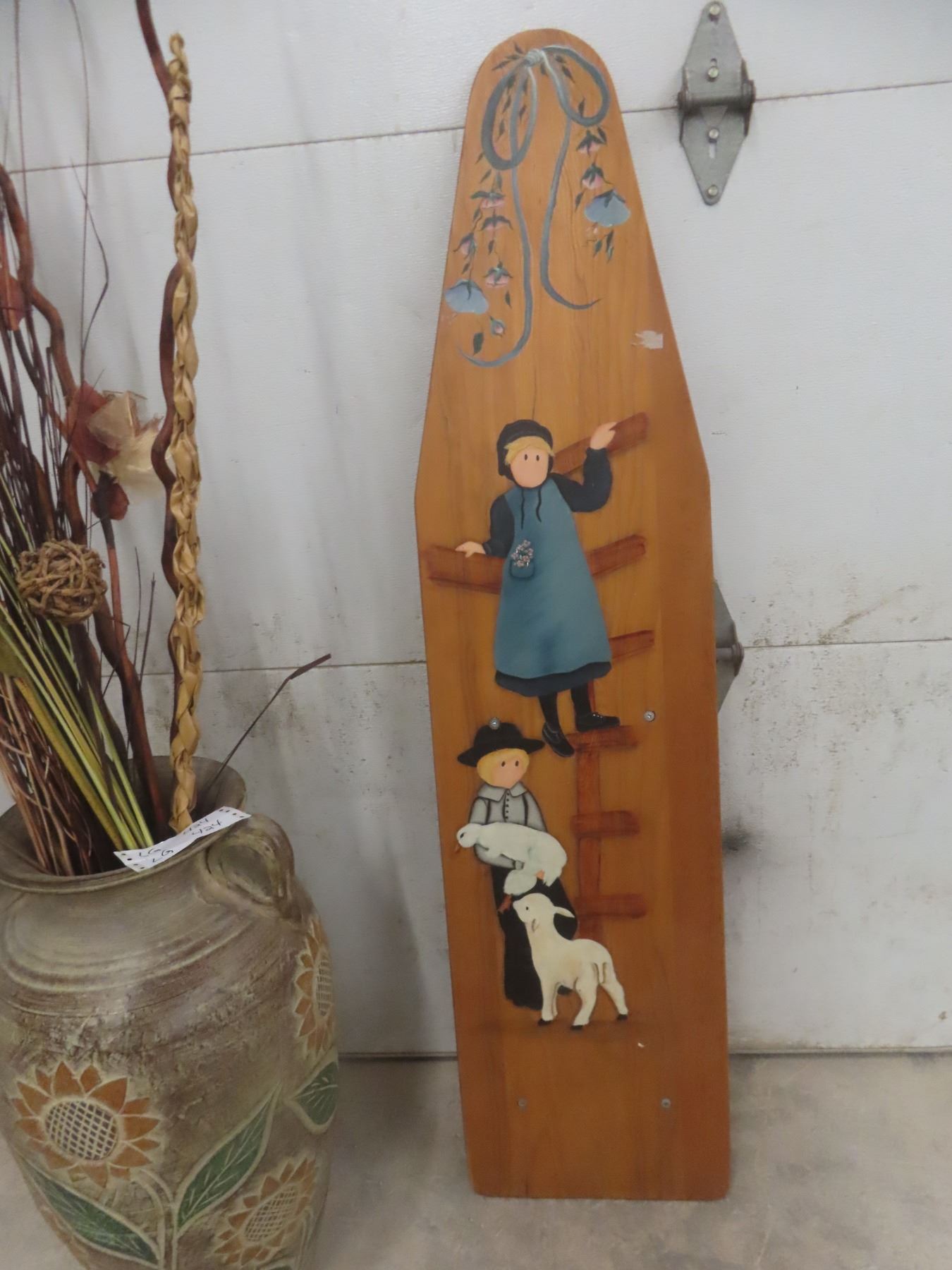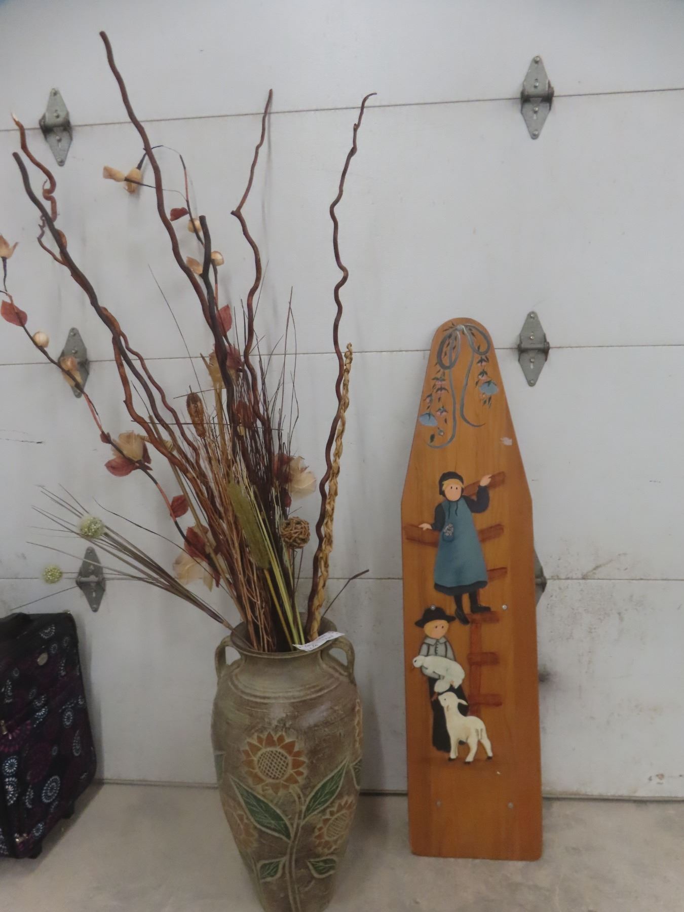 Large Floor Vase With Dried Flowers and Twisted Willows, 76" High, and Wooden Ironing Board Hand-Painted Picture