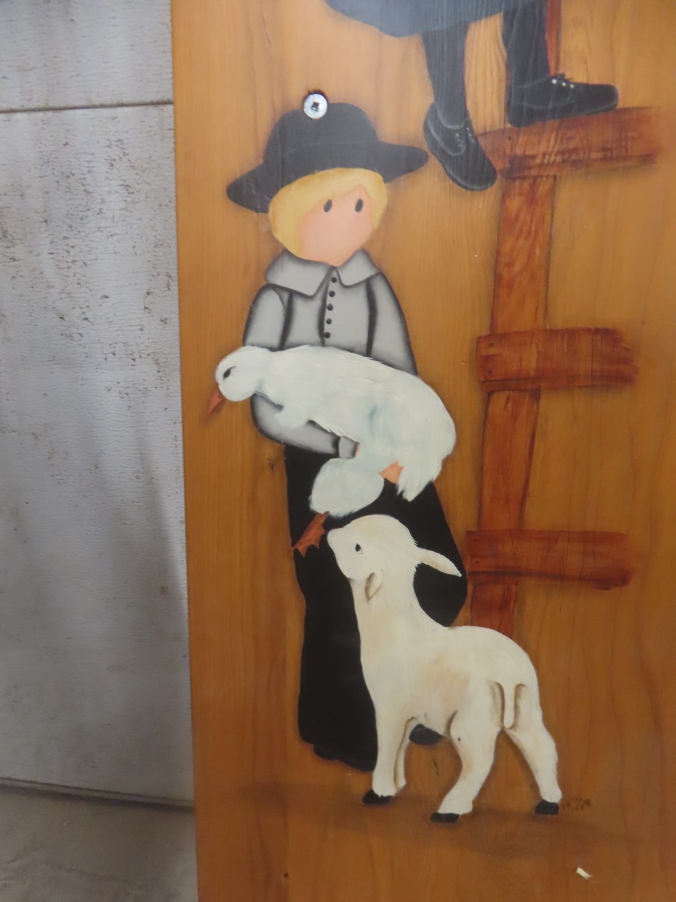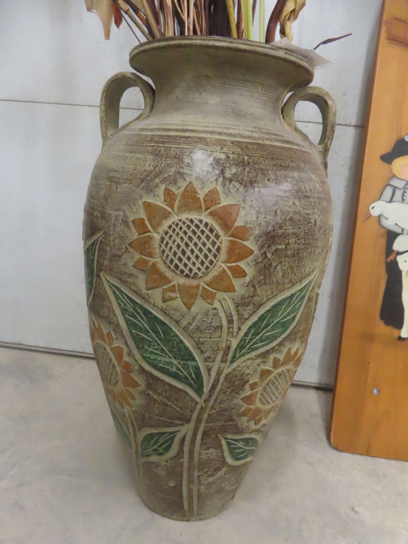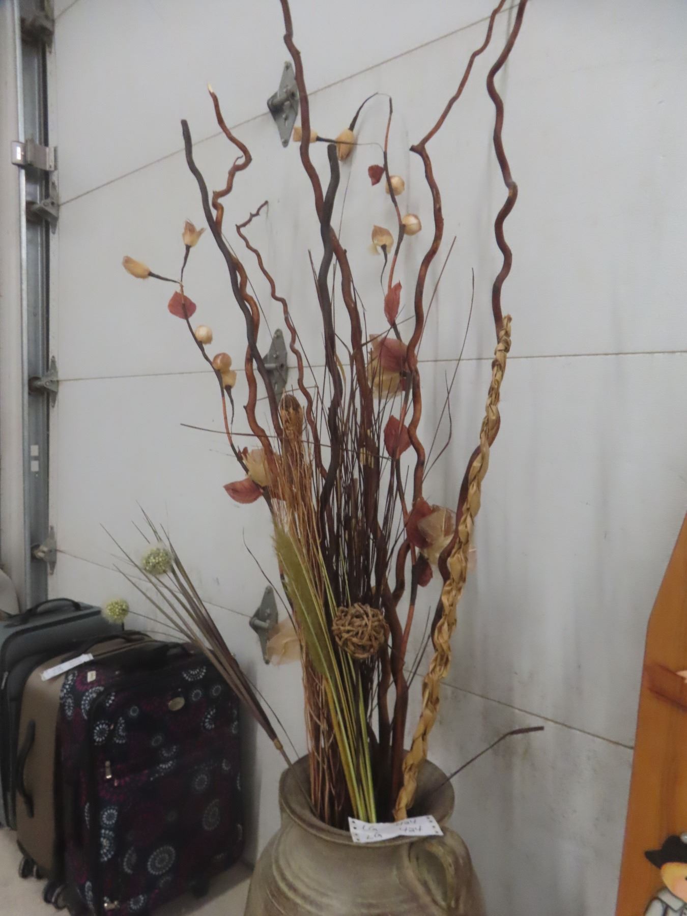 Large Floor Vase With Dried Flowers and Twisted Willows, 76" High, and Wooden Ironing Board Hand-Painted Picture