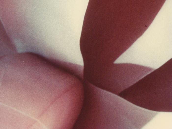 This art print is a close-up view of a flower, which gives it an abstract form. Medium: Print on paperFraming: Covered with acrylic sheet, on top of frame, with sides painted blackSize: 26 1/2 x 39 1/2 inches squareCondition: Excellent; slightly uneven on the frame, and it needs to be readjustedThis print reminds us of Georgia O'Keefe, and will bring a naturalistic modernism to any wall.