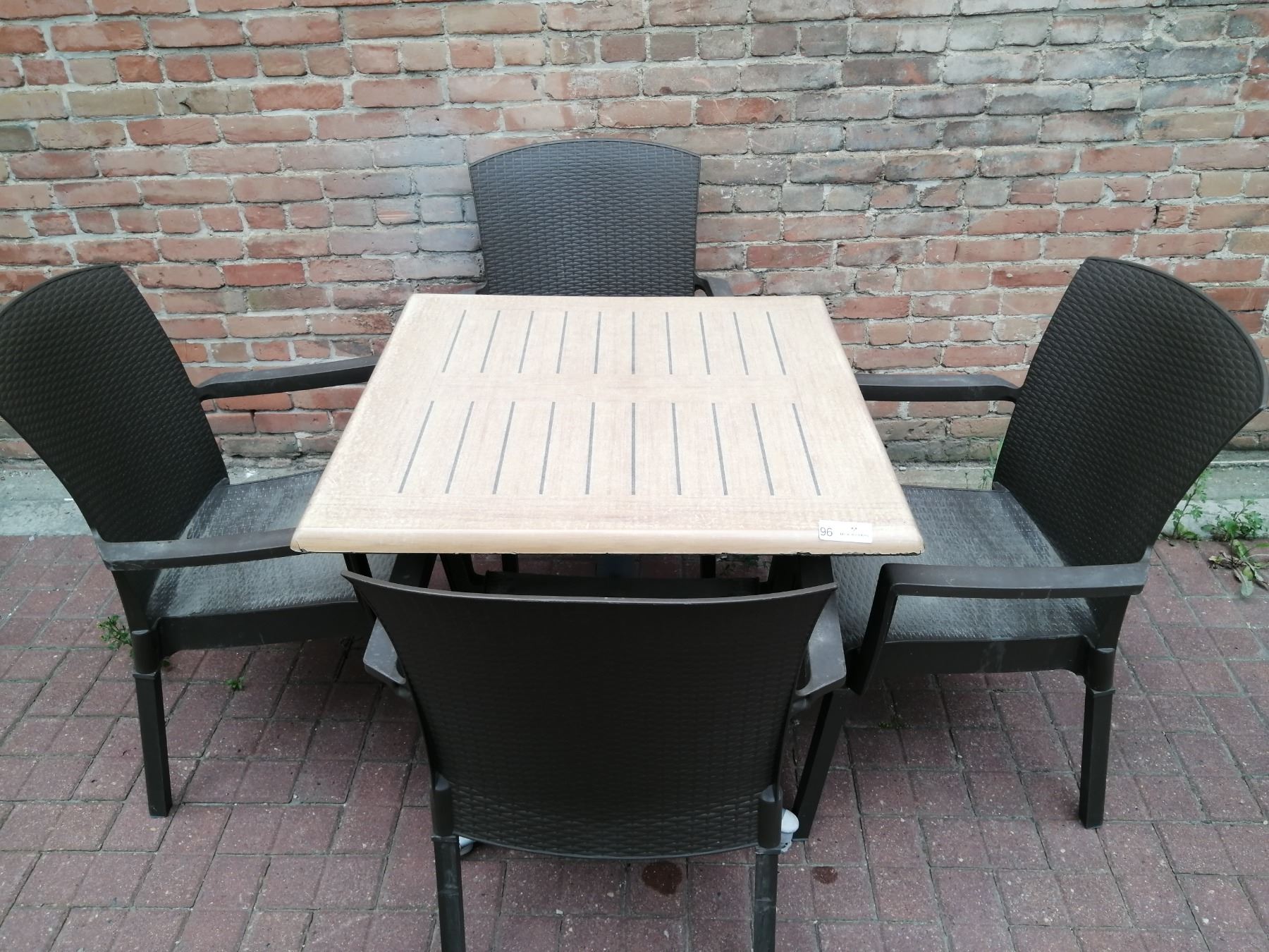Large Folding Patio Table w/ 4 x Wicker-Like Plastic Chairs