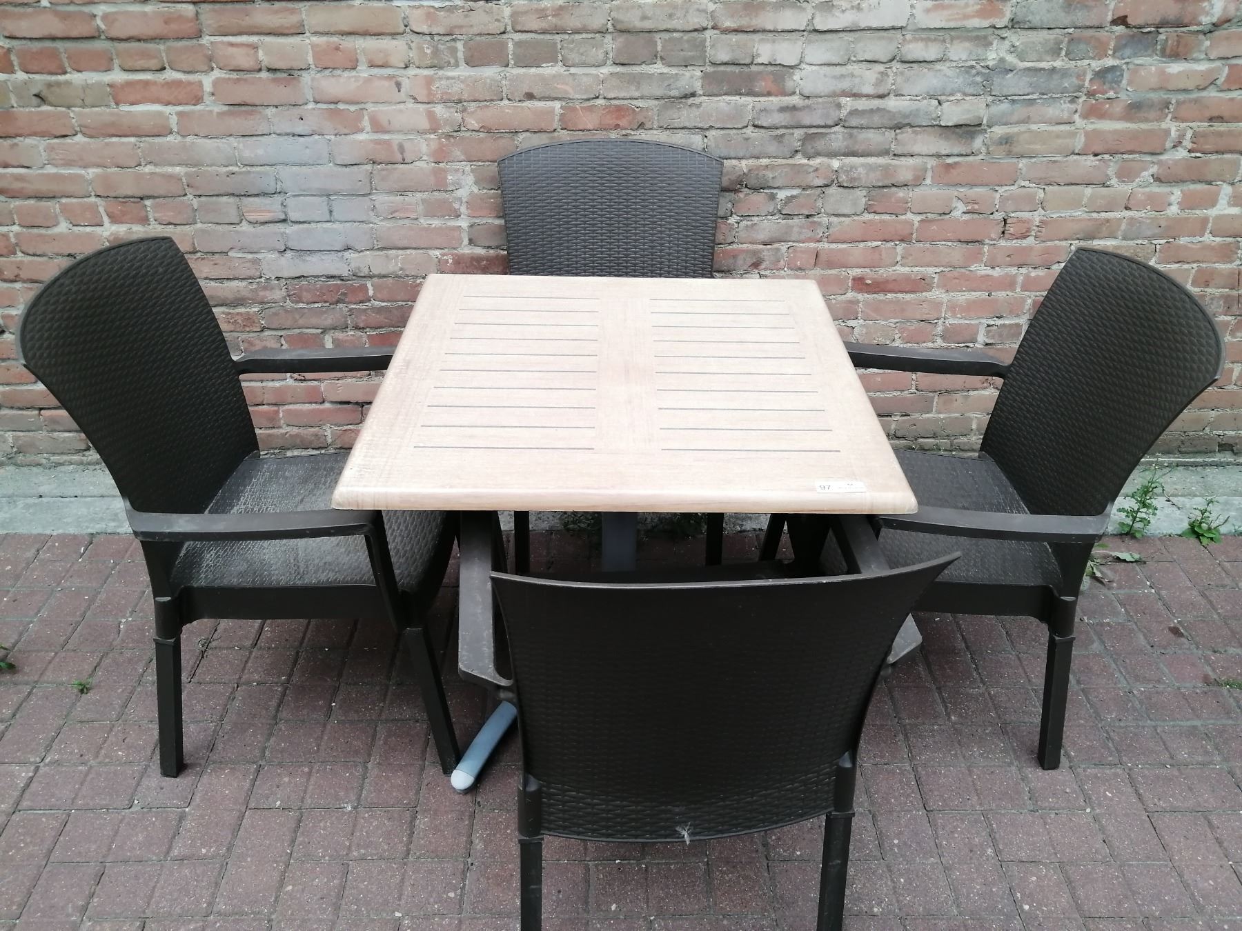 Large Folding Patio Table w/ 4 x Wicker-Like Plastic Chairs