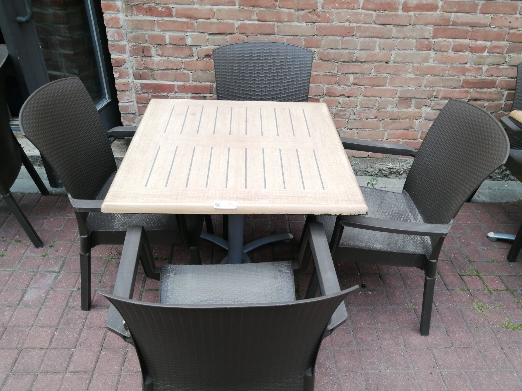 Large Folding Patio Table w/ 4 x Wicker-Like Plastic Chairs