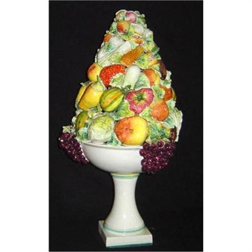 A work of art. The colors are spectacular, the sculpturing work is sublime. A combination of fruits and veggies, the likes of which you will not see anywhere else. All executed in a footed urn. Great in a dining room or a fabulous kitchen. One-of-a-kind. Spectacular!
