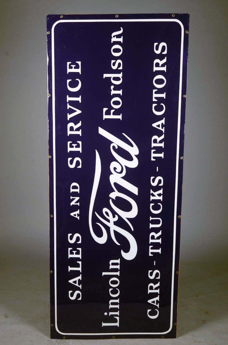 Reads "Sales and Service Lincoln Ford Fordson Cars Trucks Tractors," circa 1920s Condition (Restored). Size 27" x 66"