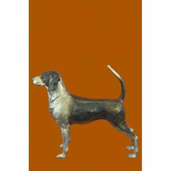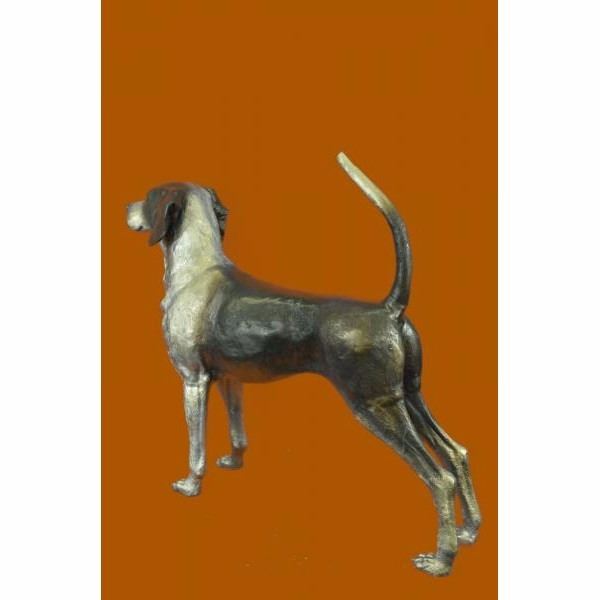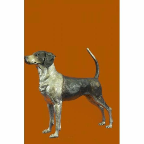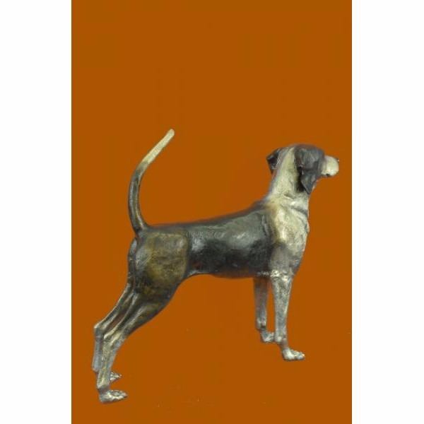 A foxhound is a large hunting hound .Foxhounds hunt in packs and, like all scent hounds, have a strong sense of smell. They are used in hunts for foxes , hence the name. When out hunting they are followed usually on horseback and will travel several miles to catch their target. These dogs have strong natural instincts to hunt and are energetic and active. This wonderful bronze sculpture of the Foxhound will memorialize this wonderful breed. Condition : This sculpture is in perfect condition. Bronze Dimensions :Height 26" x Width 36" Weight : 29 LBS Inventory : 64-9406025546