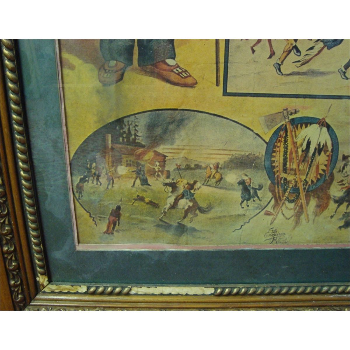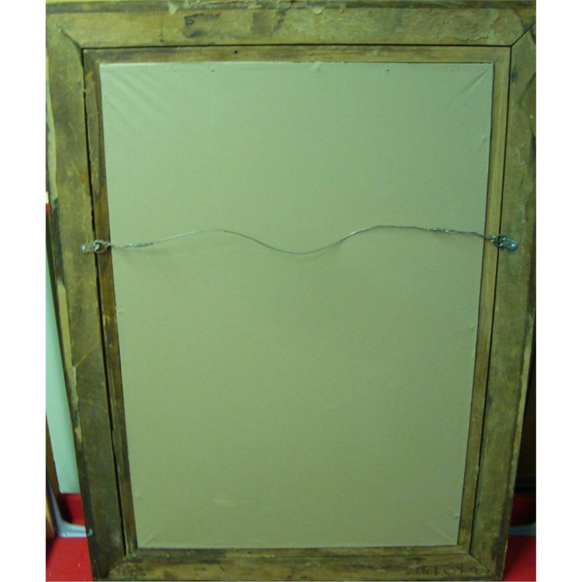 Measures 36``x 48`` w/ frame, Nice condition w/ some water stains on the bottom. Frame is missing some decoration, otherwise fine.