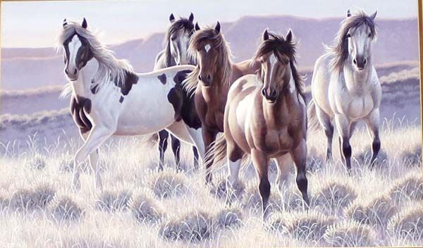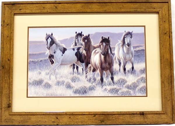Large Framed ''Young Bloods'' Print, Cynthie Fisher, visual measures 14'' x 23'', professionally framed, double matted, and under glass, beautiful print