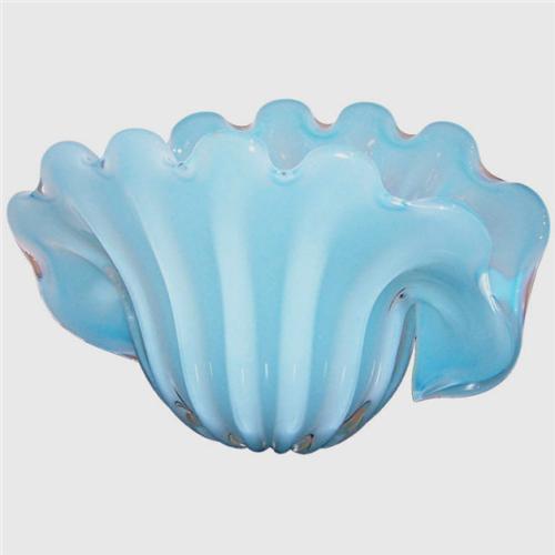Beautiful and large Fratelli Toso shell bowl, opalino blue.