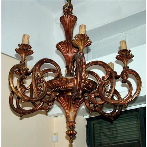 A fantastic French Chandelier, best quality bronze foundry , in excellent conditions , still with the original coppered finishing ,6 lights rewired to U.S. standard , accepting 100W bulbs , measuring 34 inches H and 32 inches wide, very heavy, since it is massive bronze, weights about 80 pounds. SHipping within US $ 295