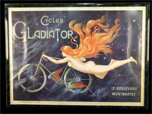 Large, French "Gladiator" Cycles sign very colorful 55 x 40"