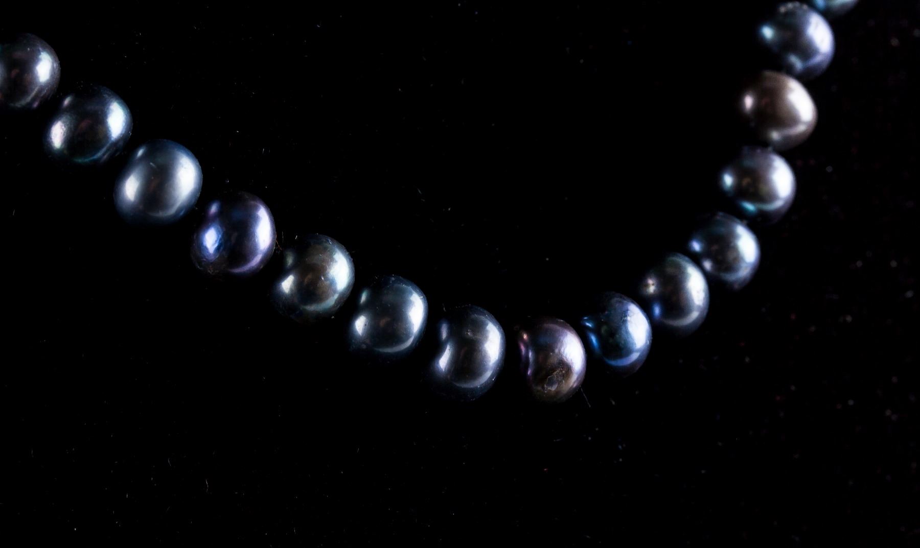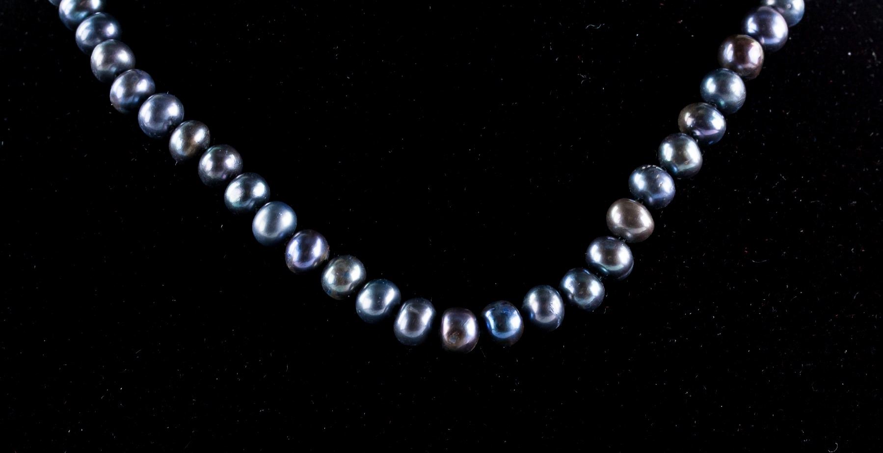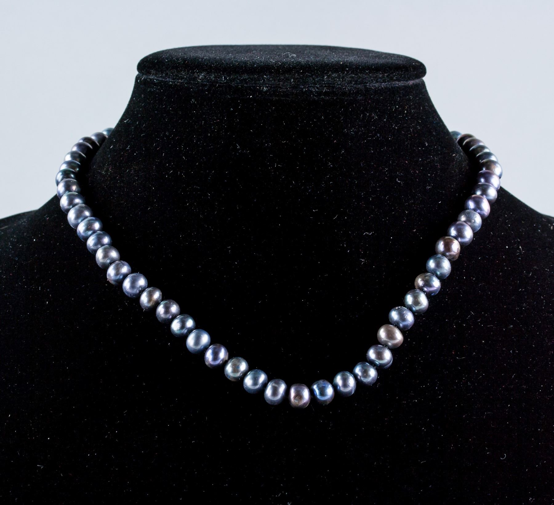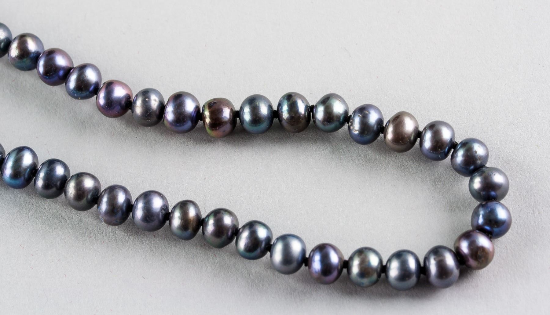 Sterling silver necklace. Set with 6-6.5mm individually knotted fresh water peacock colored pearls. Retail value $250. 17 in