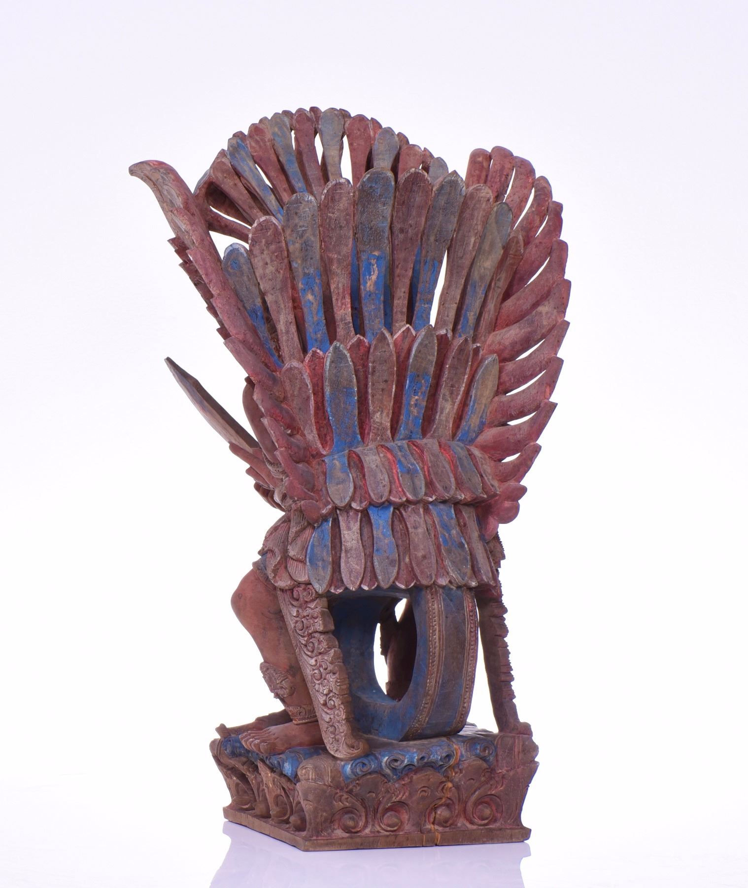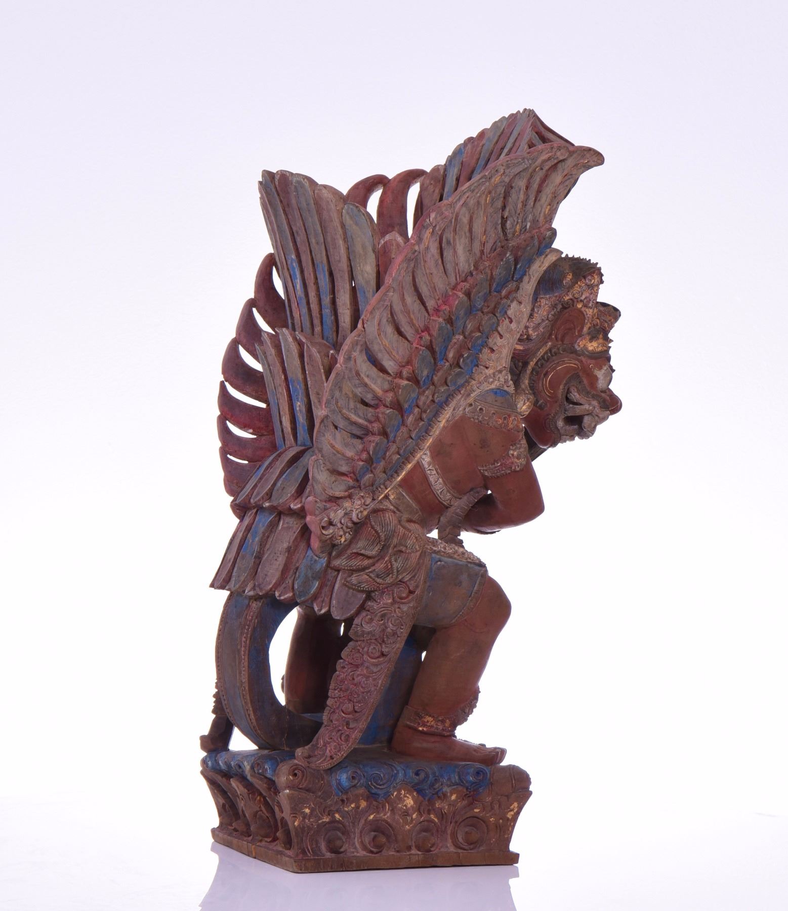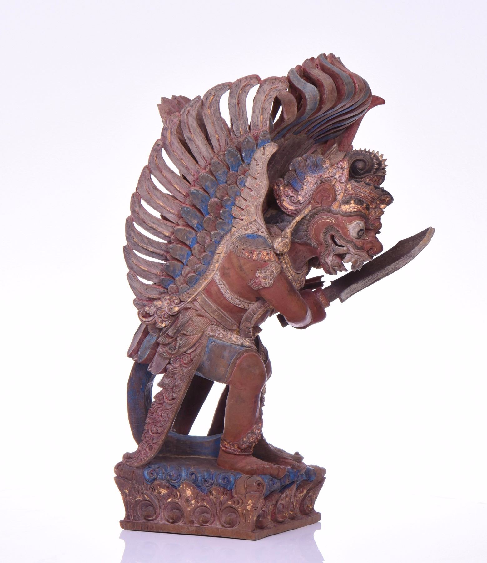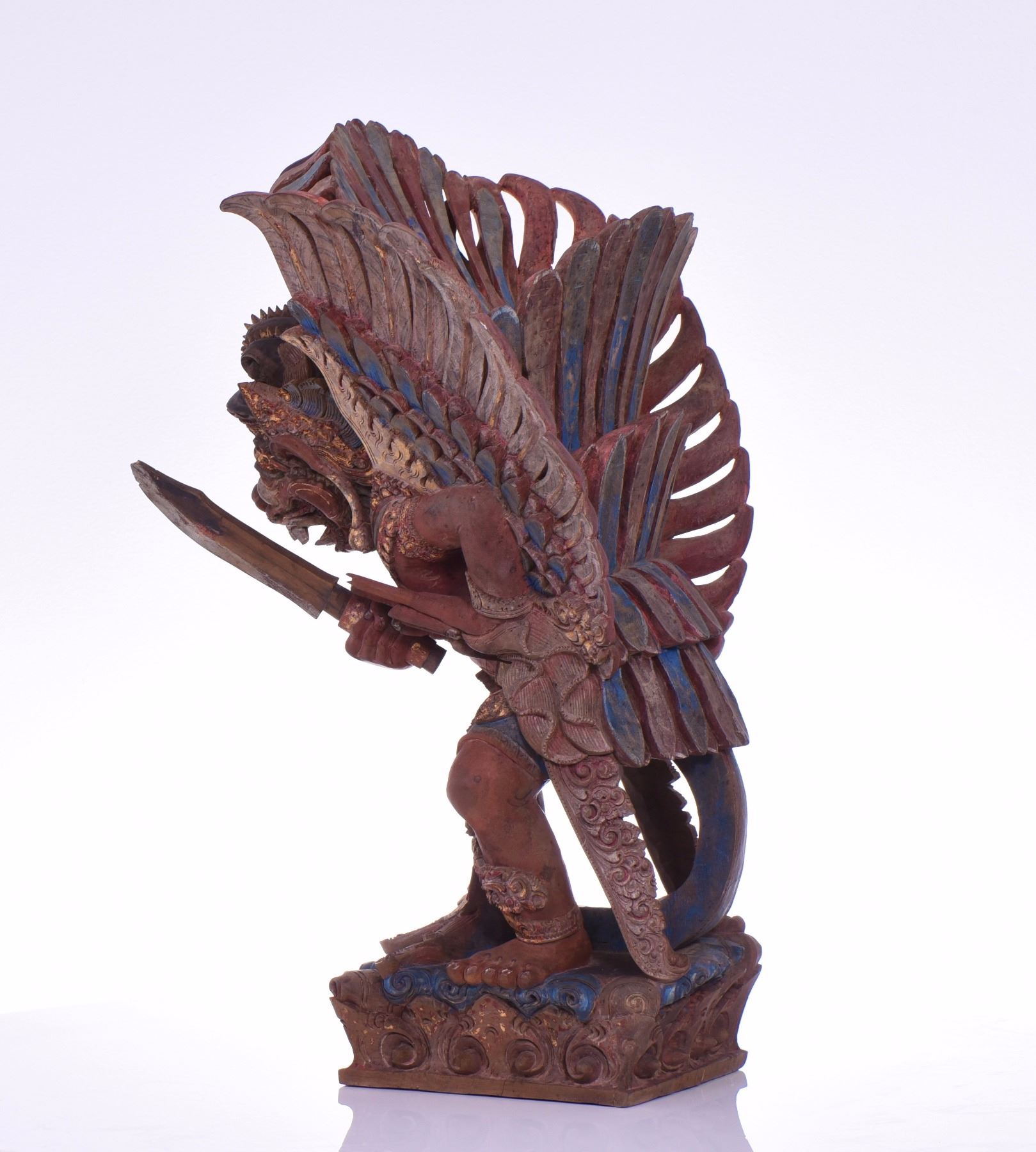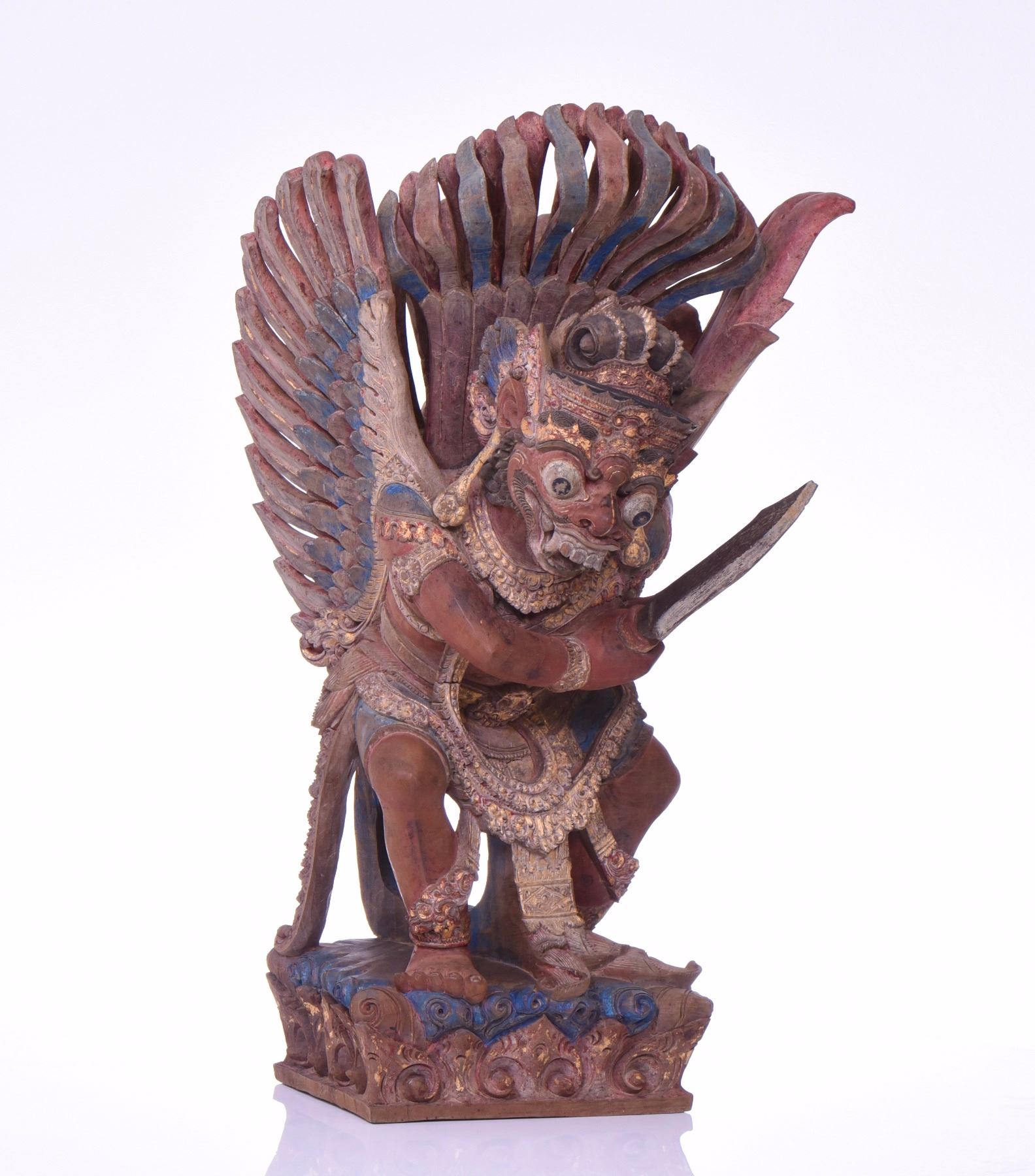 Indonesian Polychrome Hand Carved Wood Hindu Deity Of A Young Vishnu. Estimated more than 100 yrs. old. Indonesian art consists of various artistic expressions and artworks of the archipelagic nation of Indonesia. It includes both age old art forms and recently developed contemporary art. Indonesian arts have experienced foreign exposures and influences most notably from India, Arabia, China and Europe. The nation consists of 13,466 islands where 922 are permanently inhabited by over 300 ethnic groups speaking more than 700 living languages. Wood and stone sculpting tribal art has flourished within the culture of Nias, Batak, Asmat, Dayak and Toraja. Between 8th to 15th century, Javanese civilization has developed a refined stone sculpting art and architecture which was influenced by Hindu-Buddhist Dharmic civilization. The art of wood carving is quite well-developed in Indonesia and certain areas are well known for its refined wood carving culture in Jepara and Bali. Balinese painting tradition are notable for its highly vigorous yet refined intricate art which resembles baroque folk art with tropical themes. Modern Indonesian paintings were pioneered by Raden Saleh, an 19th century an Arab-Javanese painter renowned for his romantic-naturalistic work during Dutch East Indies period in Indonesia. Prominent Indonesian painters in 20th century includes Basuki Abdullah, Lee Man Fong, Ida Bagus Made, Dullah and Affandi. (Wikipedia) Size: See Ruler Photo. (Photos Represent The Lot Condition, Pangaea Auctions)