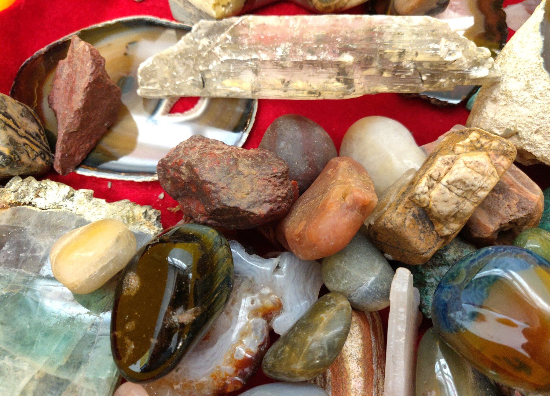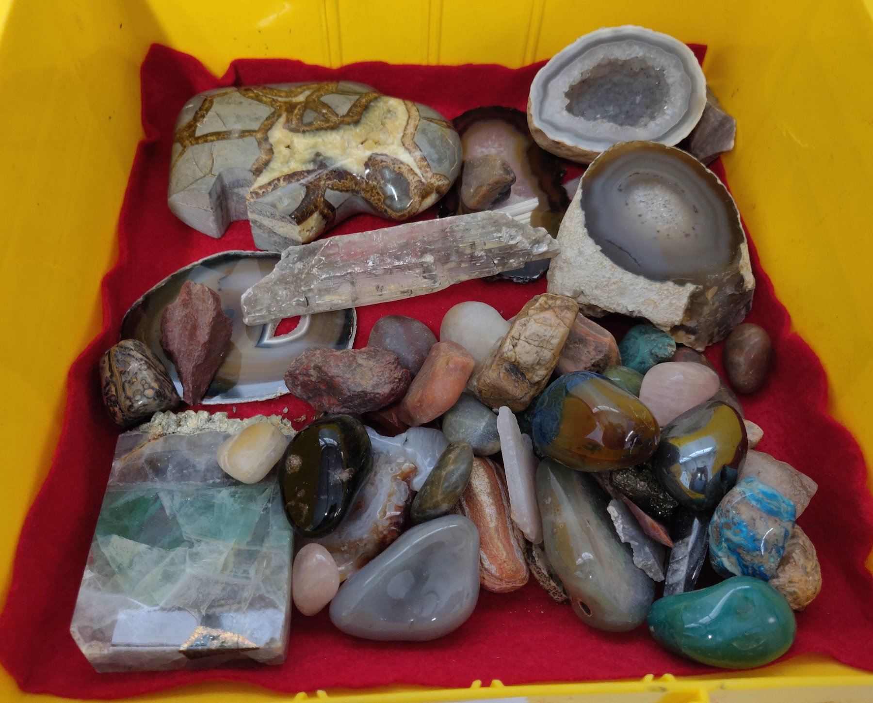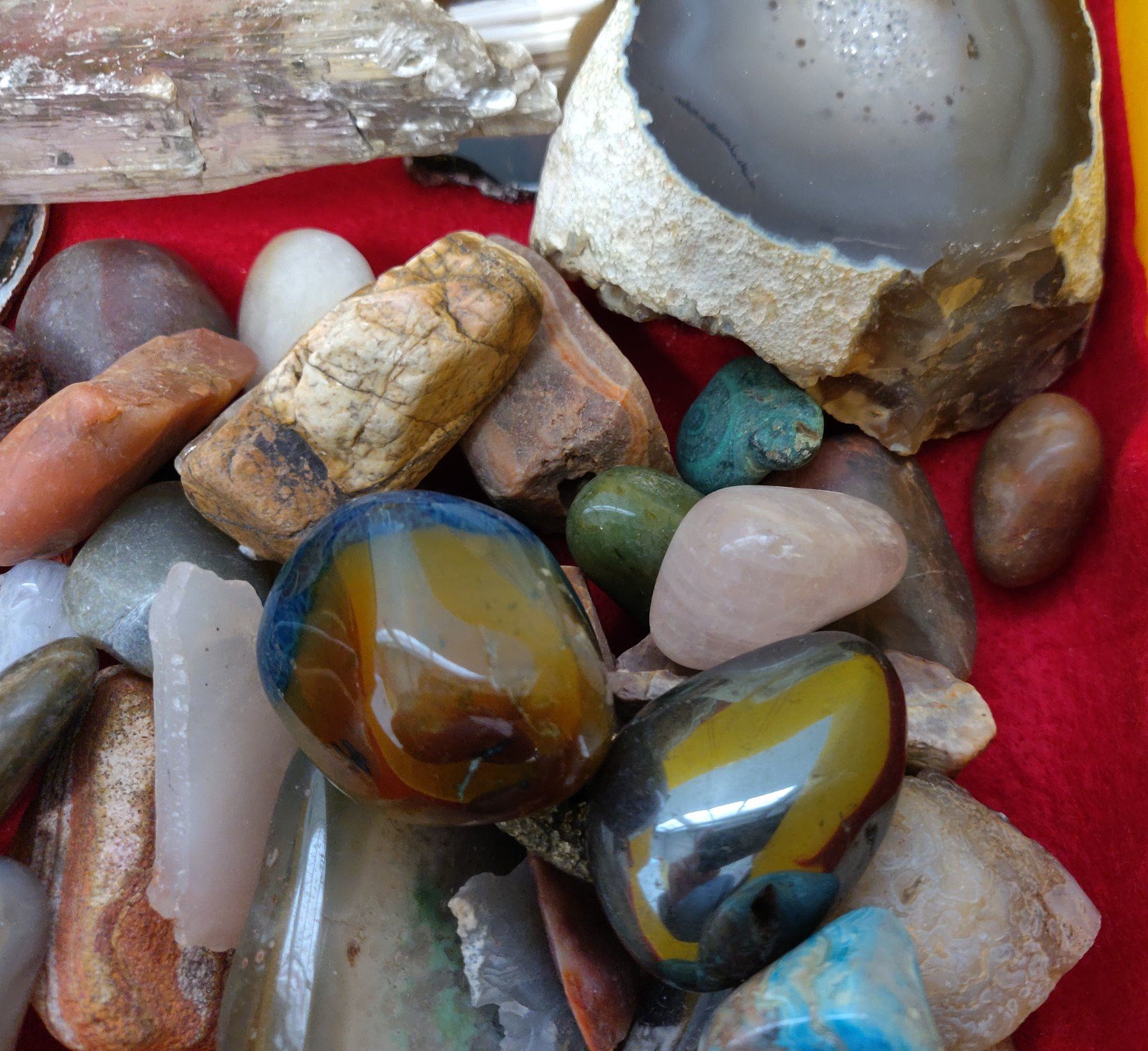 Large Gem & Mineral Collection, ancient items polished in modern times. Made of quartz, agate, iron pyrite, etc., the largest measures 4 1/2". Mostly USA. More than 40 pieces total, includes picture rock, buffalo. Condition: Good, see images. Shipping: $35.50 w/insurance and signature, wrapped, due to value.