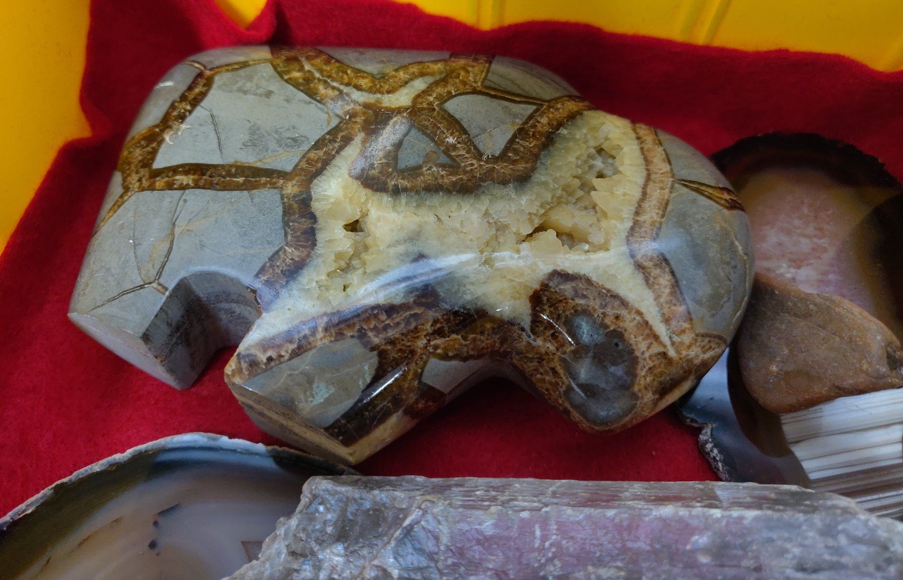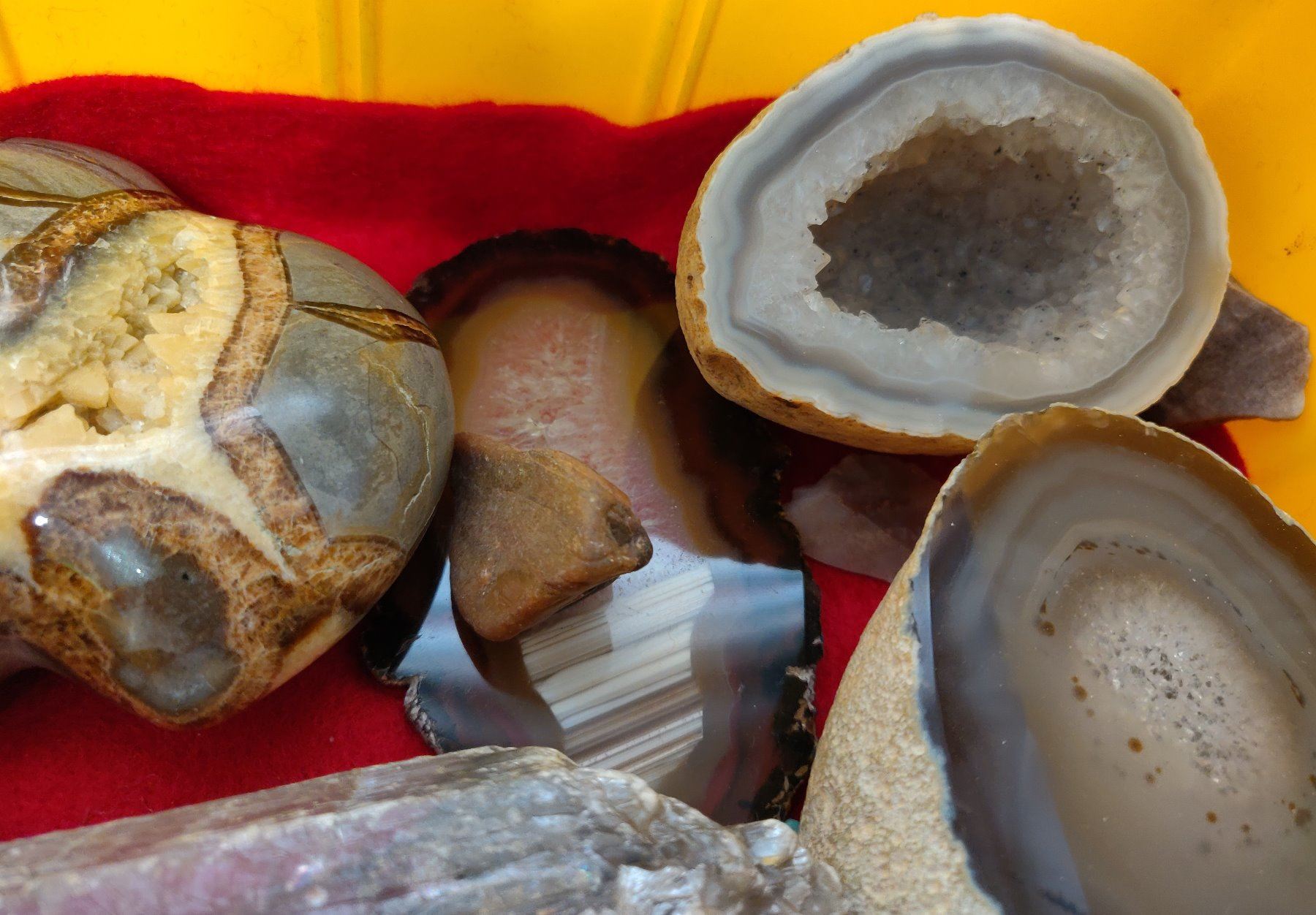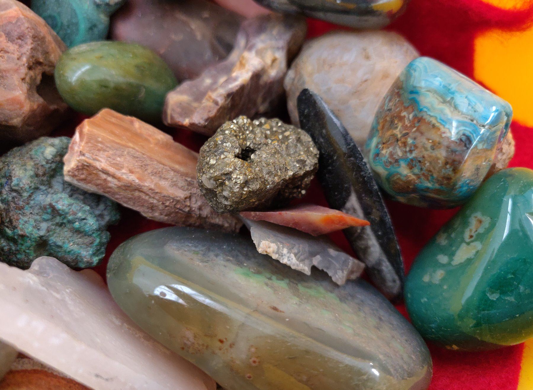 Large Gem & Mineral Collection, ancient items polished in modern times. Made of quartz, agate, iron pyrite, etc., the largest measures 4 1/2". Mostly USA. More than 40 pieces total, includes picture rock, buffalo. Condition: Good, see images. Shipping: $35.50 w/insurance and signature, wrapped, due to value.