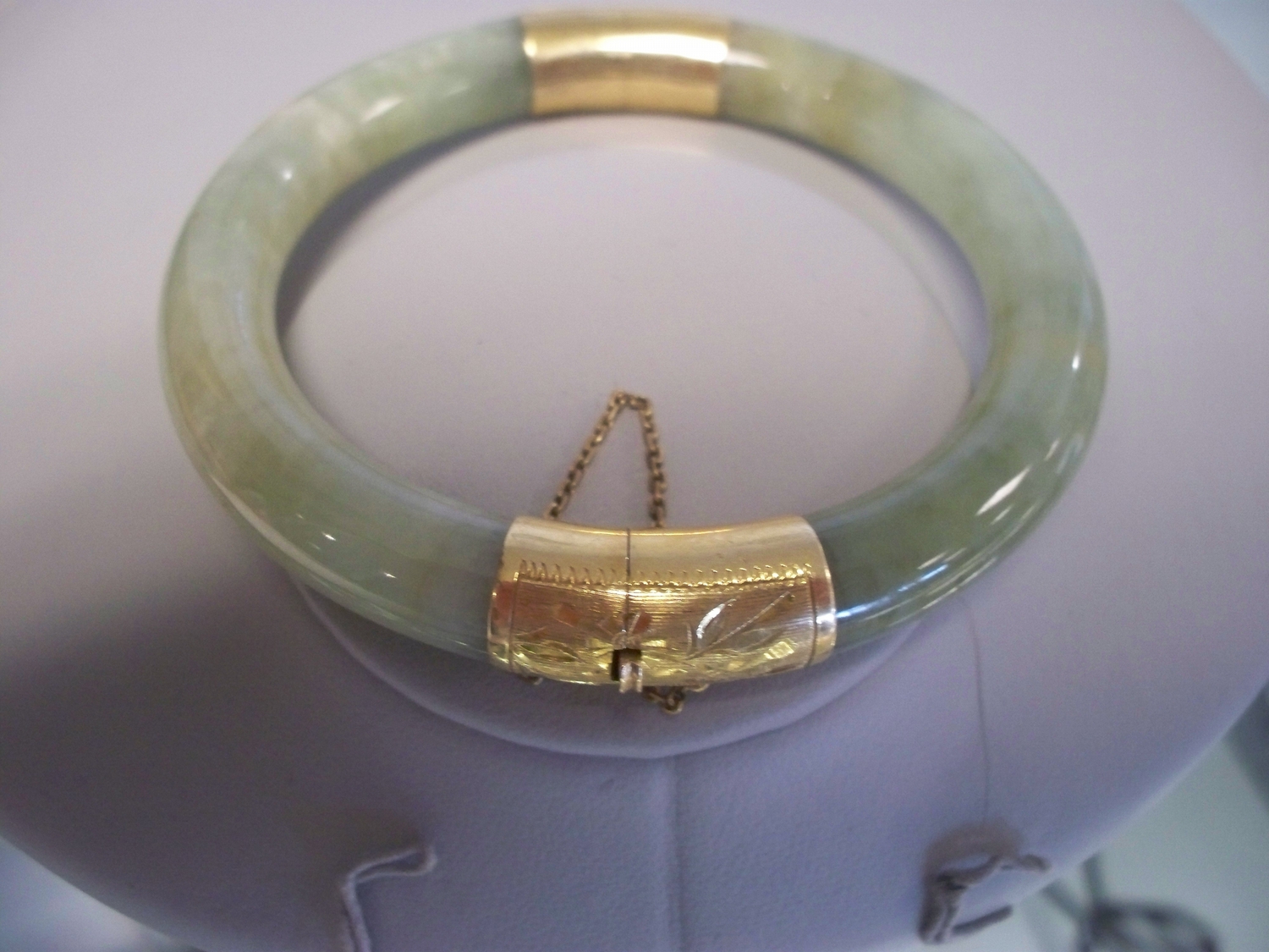 Large Genuine Jade Bangle W/14K Gold Hinges