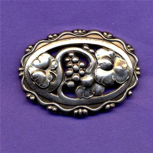 As a Wine Sister USA Signature Selection, we want to help you find wine related items on our website. We hope to be able to expand the selection of items being offered in the near future. A wonderful large Georg Jensen Grape Brooch #177 -- additional information on Georg Jensen can be found in Janet's book "Georg Jensen A Tradition of Splendid Silver". Has impressed company marks: Georg Jensen Denmark Sterling 177