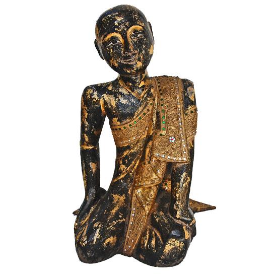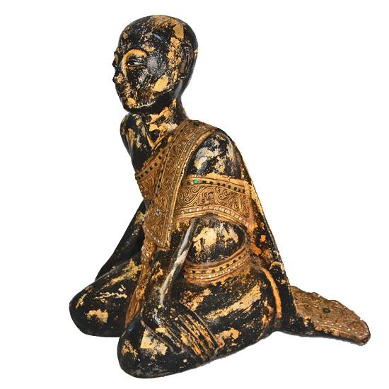 Hand-carved heavily gilded piece; rare Monkey Pod wood; 20"