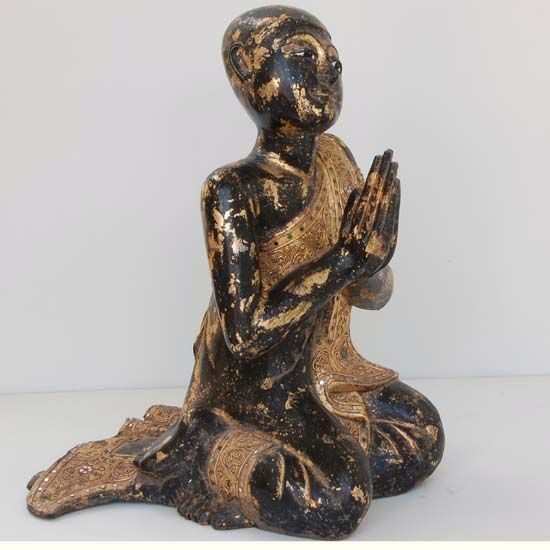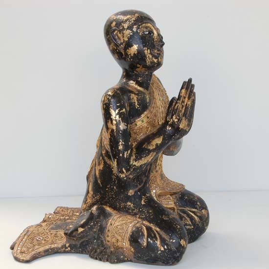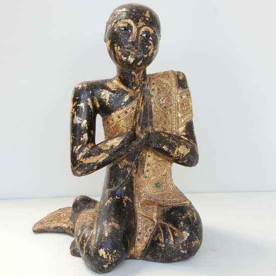 Hand-carved heavily gilded piece, Scarce Monkey Pod wood, 20"