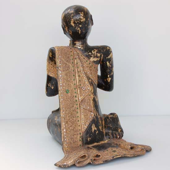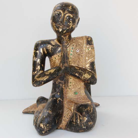 Hand-carved heavily gilded piece, rare Monkey Pod wood, 20"