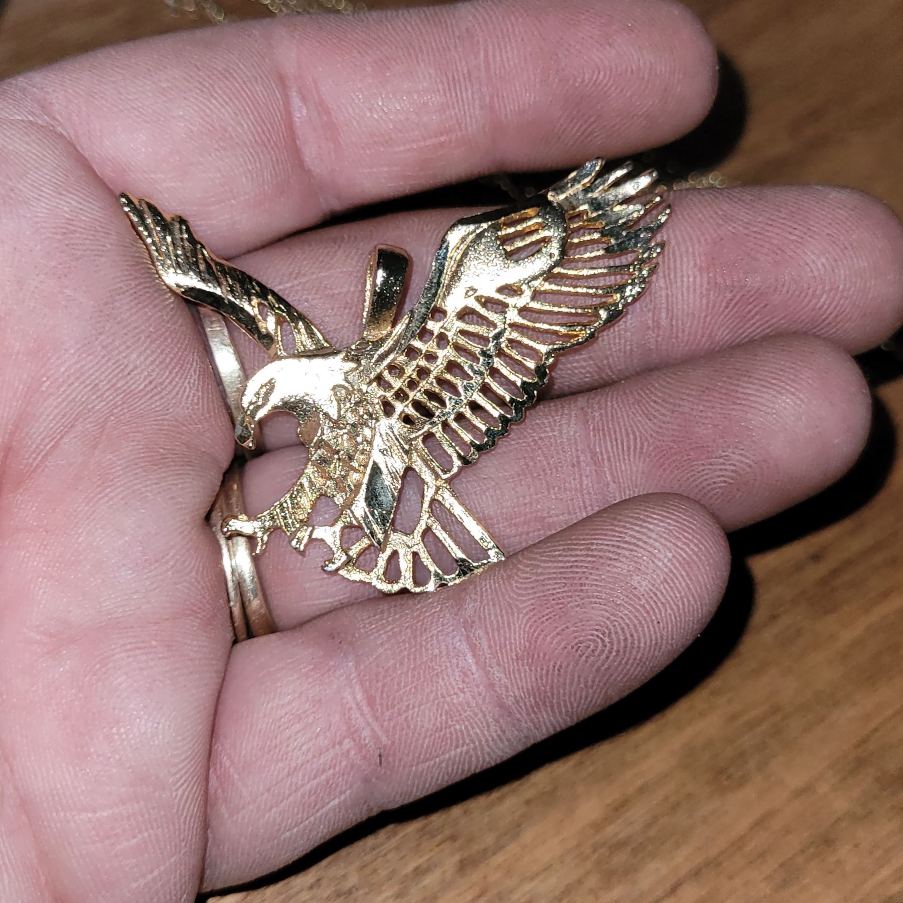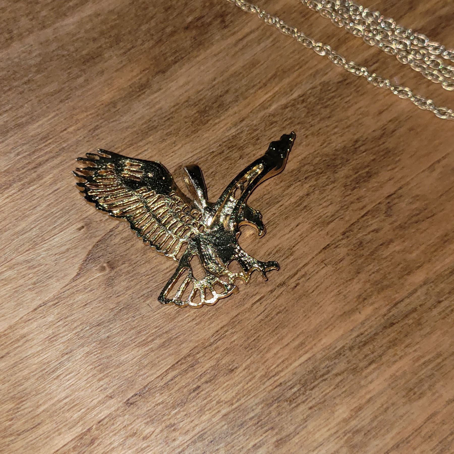 Large Gold Toned Eagle Pendant with Damaged Chain (easy fix)