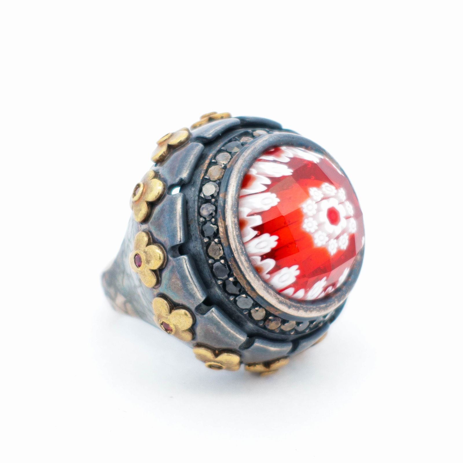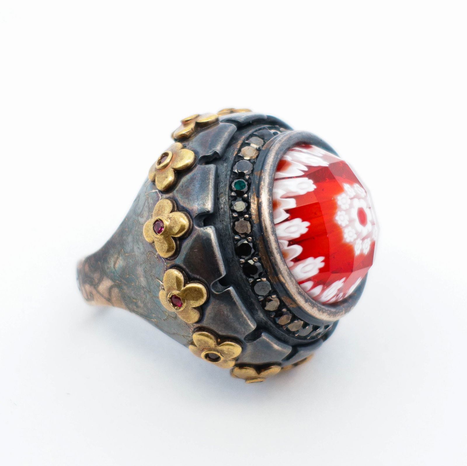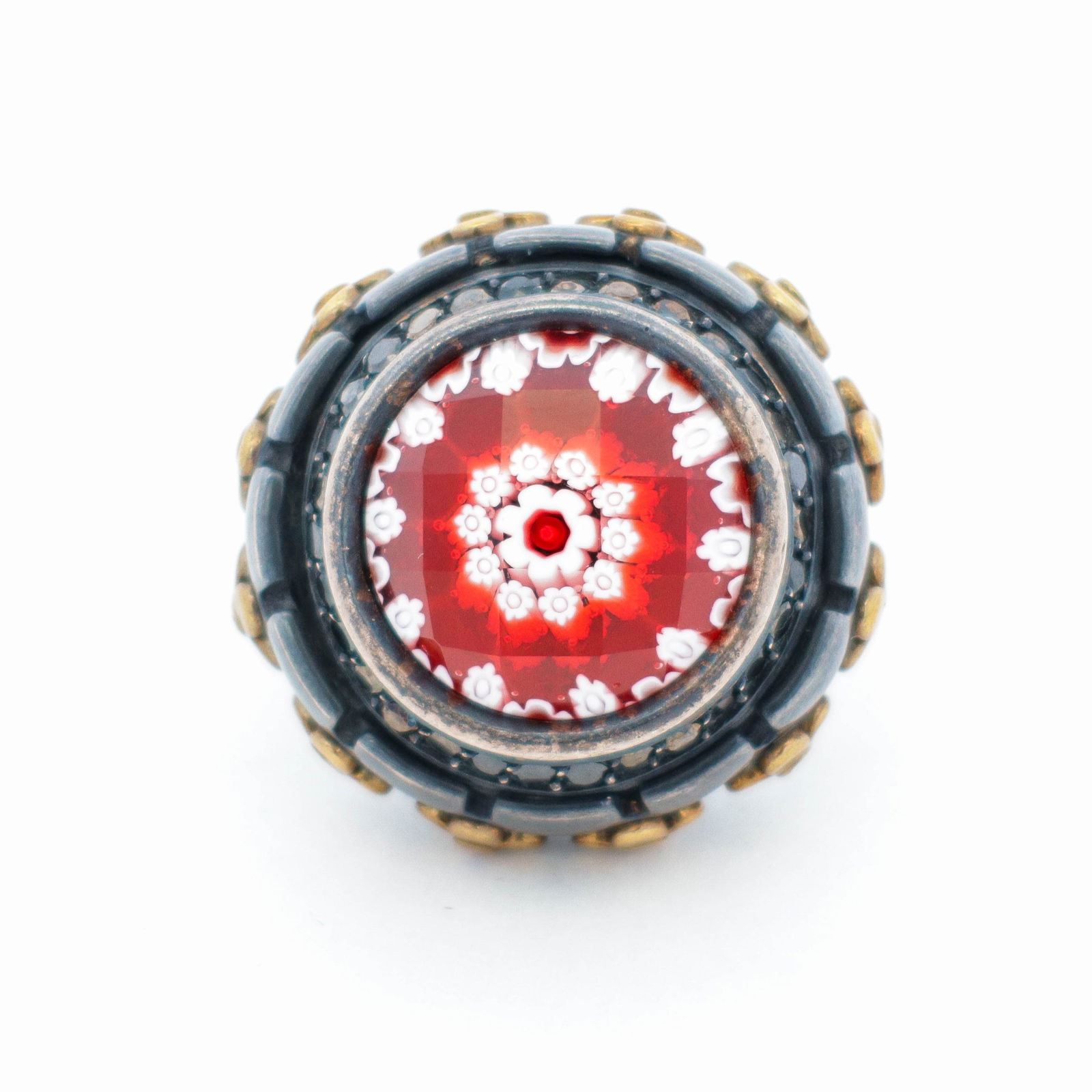 Amazing Gothic sterling and gold ring with Millefiori centerpiece. Designed by Alan K. weighs 39.7G