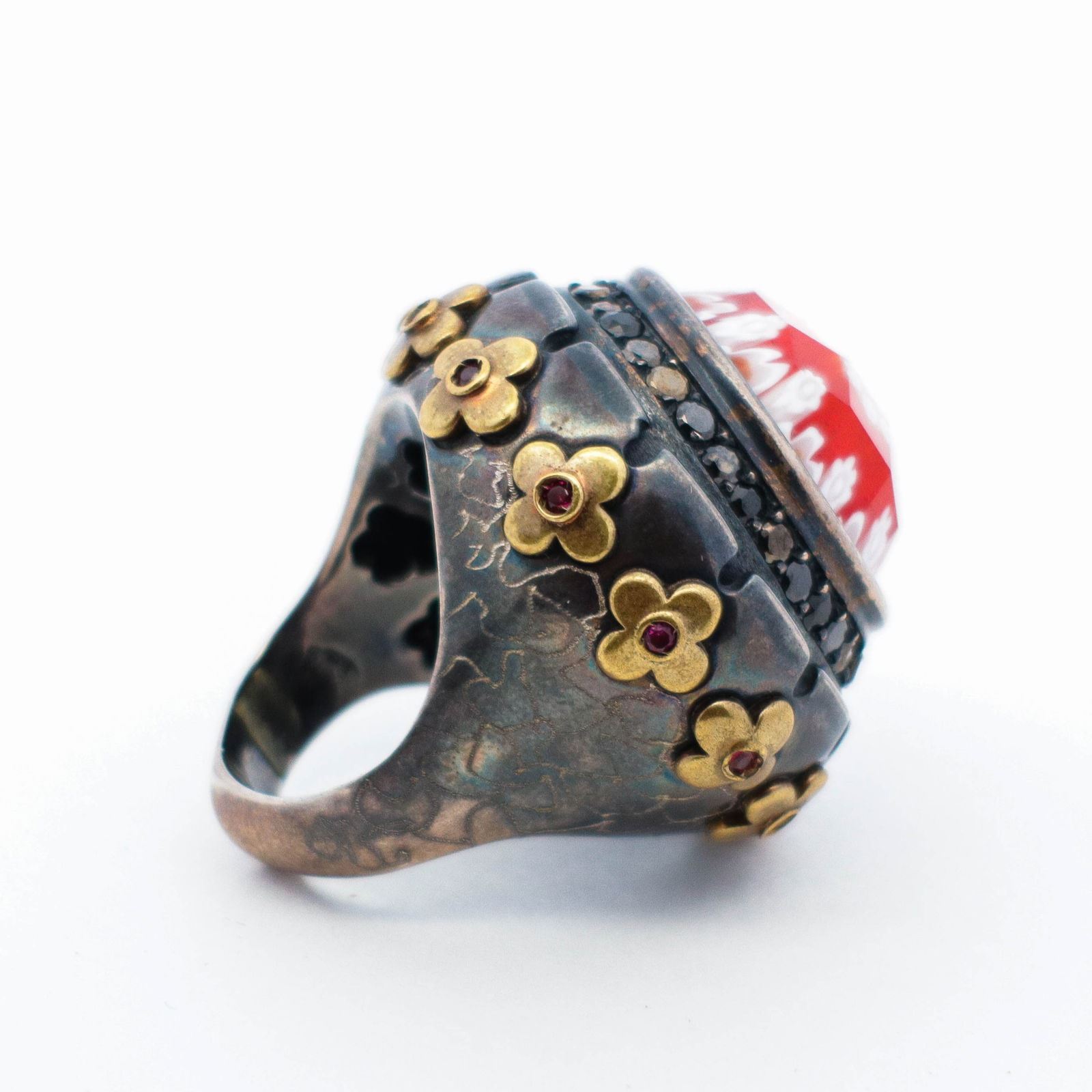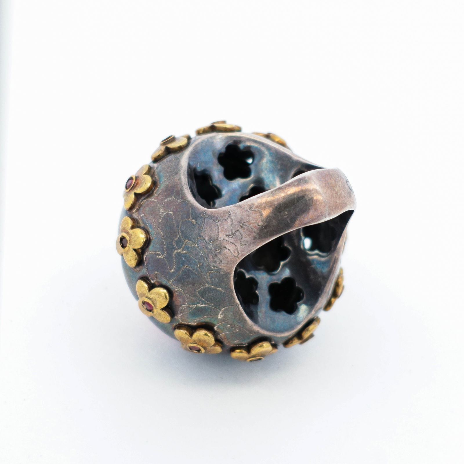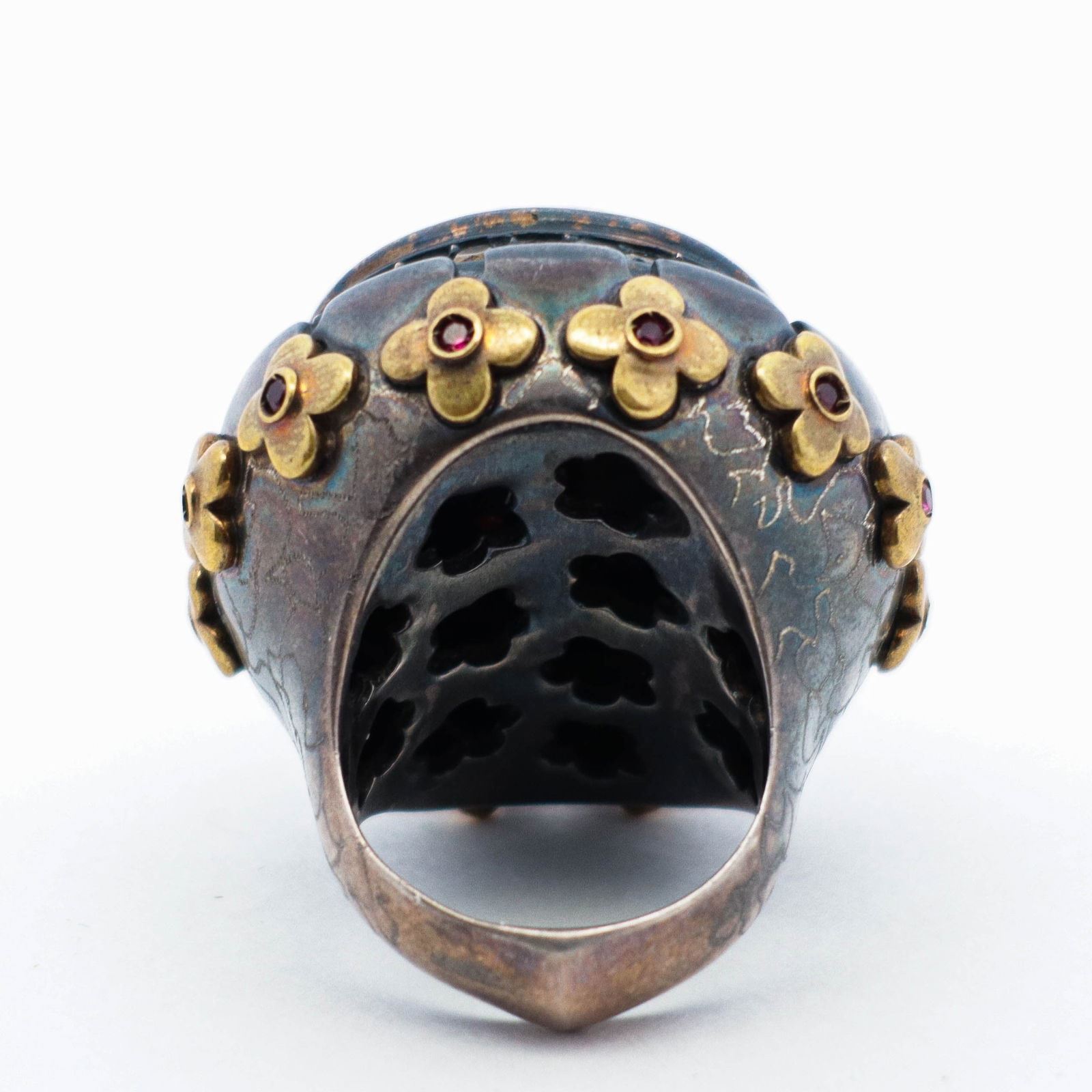 Amazing Gothic sterling and gold ring with Millefiori centerpiece. Designed by Alan K. weighs 39.7G