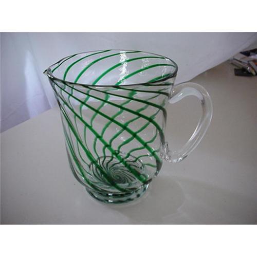 <tr><td>Title:Large Green Striped Glass Pitcher</td></tr>