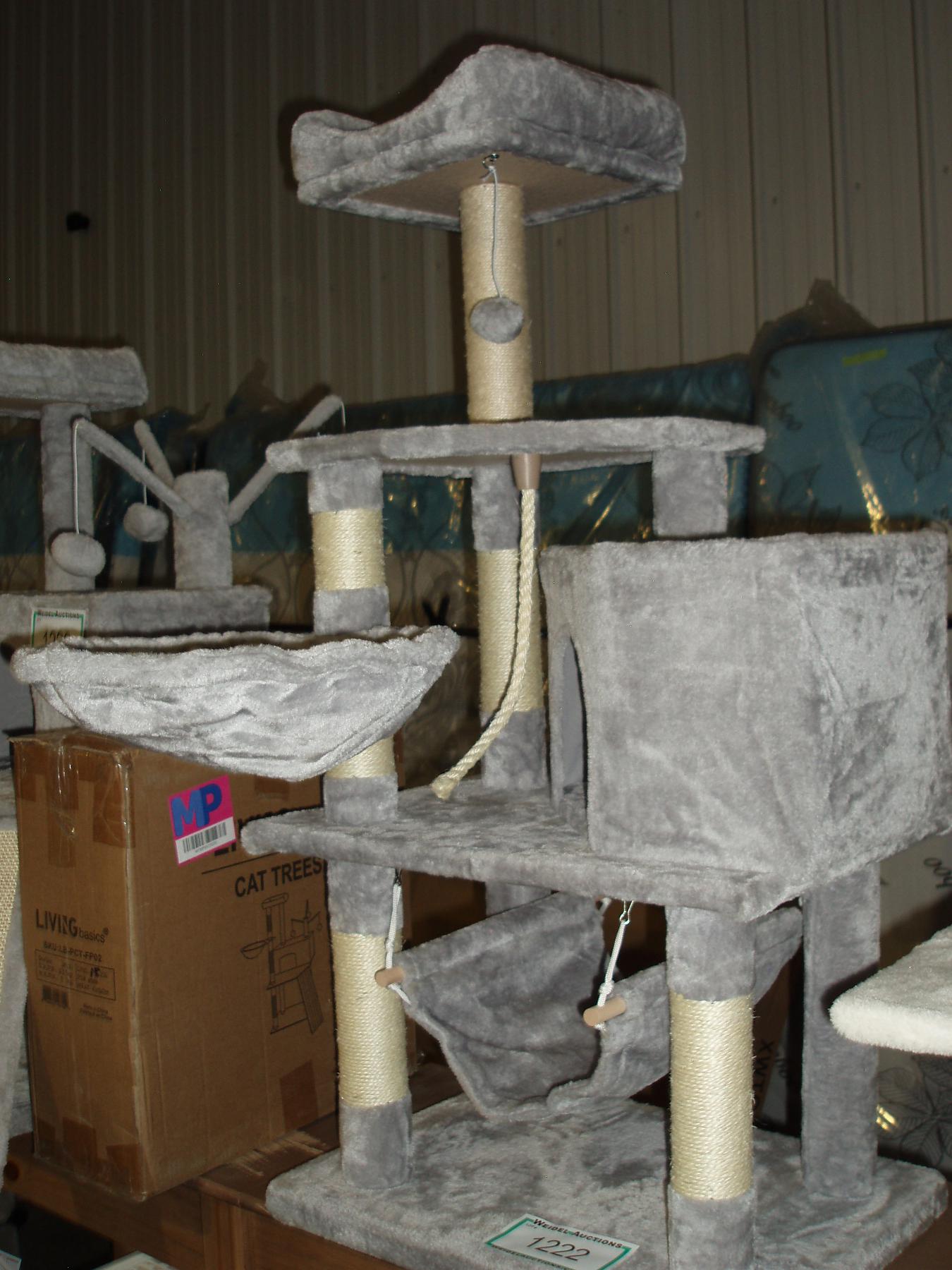 Large Grey Cat Tree with lower basket, house and 2 platform levels