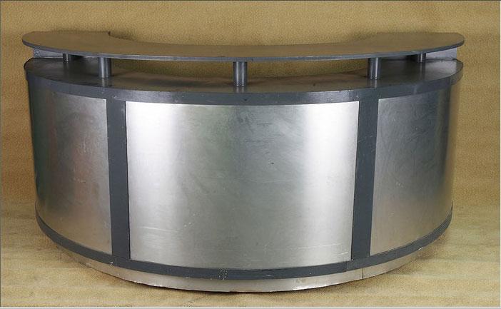 Large Grey One-Half Circle Bar with Wheels and Stainless Steel Front, breaks down into two piece for easier moving {Sku #2021616.1}