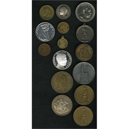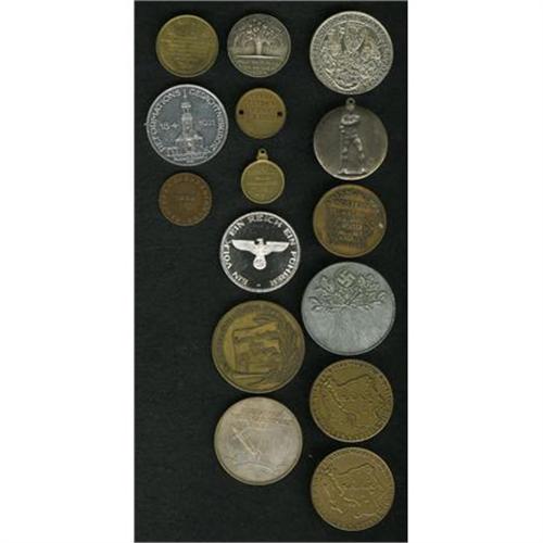 <B>15-Piece Lot of German Medals and Tokens.</B></I> Silver, brass, and aluminum. Fifteen miscellaneous German pre-World War I and World War II-related tokens and medals.<BR><BR><b>Shipping:</b> Coins & Currency (<a target="_blank" href="http://www.heritageauctions.com/common/shipping.php">view shipping information</a>)
