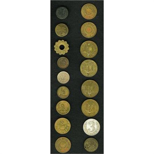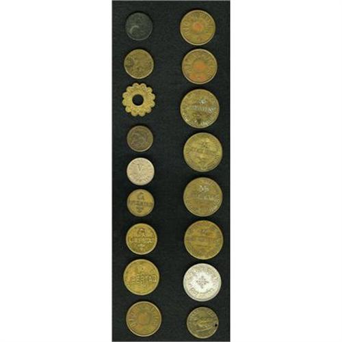 <B>17-Piece Lot of Mexican, Central American, and South American Tokens.</B></I> Nice variety of tokens from Mexico, Central America, and South America. Some of the tokens are either unlisted by merchant or by the denomination. Great research lot that is sure to draw the attention of "south of the border" collectors.<BR><BR><b>Shipping:</b> Coins & Currency (<a target="_blank" href="http://www.heritageauctions.com/common/shipping.php">view shipping information</a>)