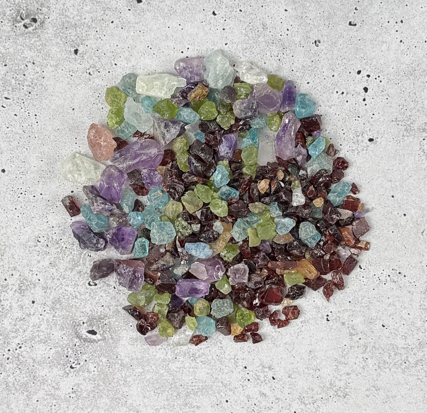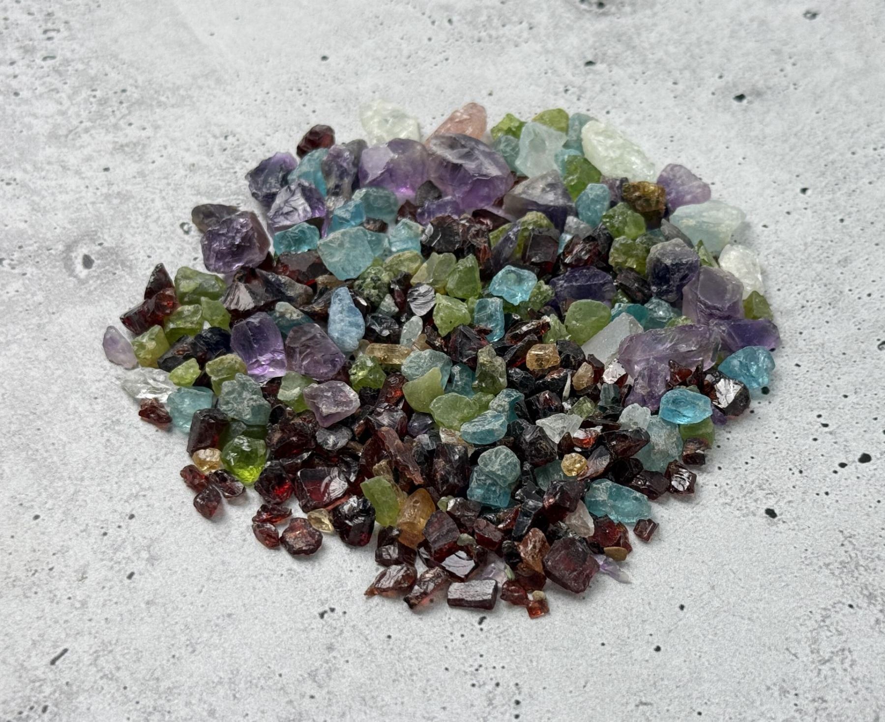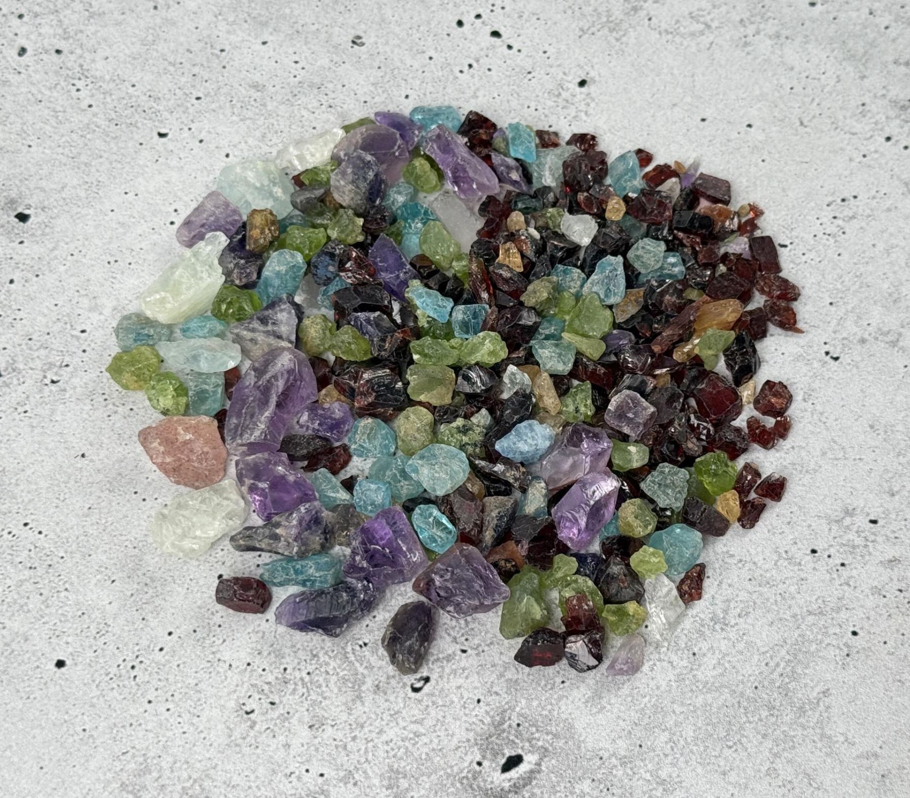Garnet, Peridot, Amethyst, Topaz and more. 706 carats, or 141.20 grams total weight.