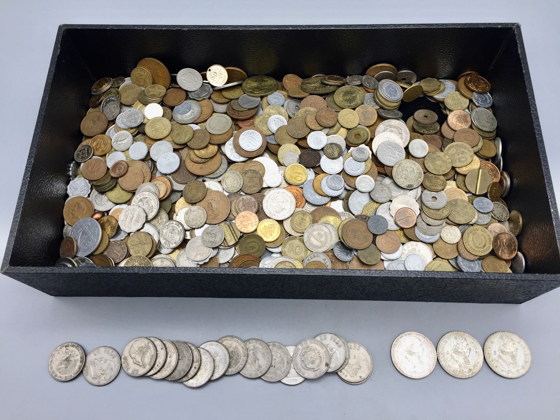 Description: Included in this lot is a large group of various foreign coins. There are a LOT of them (approx. 12.5 lbs. worth)! Some may be silver, but we did not research each and every one. Bargain lot! Maker: Varies. Approx. Age: Vintage to Antique, with a cursory look, they mostly date from the early to mid 1900s. Size: Varies. Condition: AS-IS, circulated. Please look closely at the pictures - they are an important part of our description. Shipping: There will be a $8 handling / packaging fee for shipping this lot. The actual cost of postage will be added on top of that.