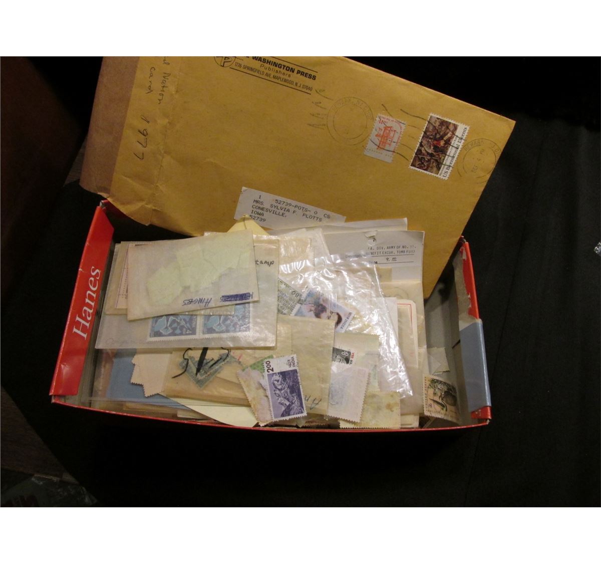 Large Group of Old U.S. & Foreign Postage Stamps in an old "Hanes" Box.