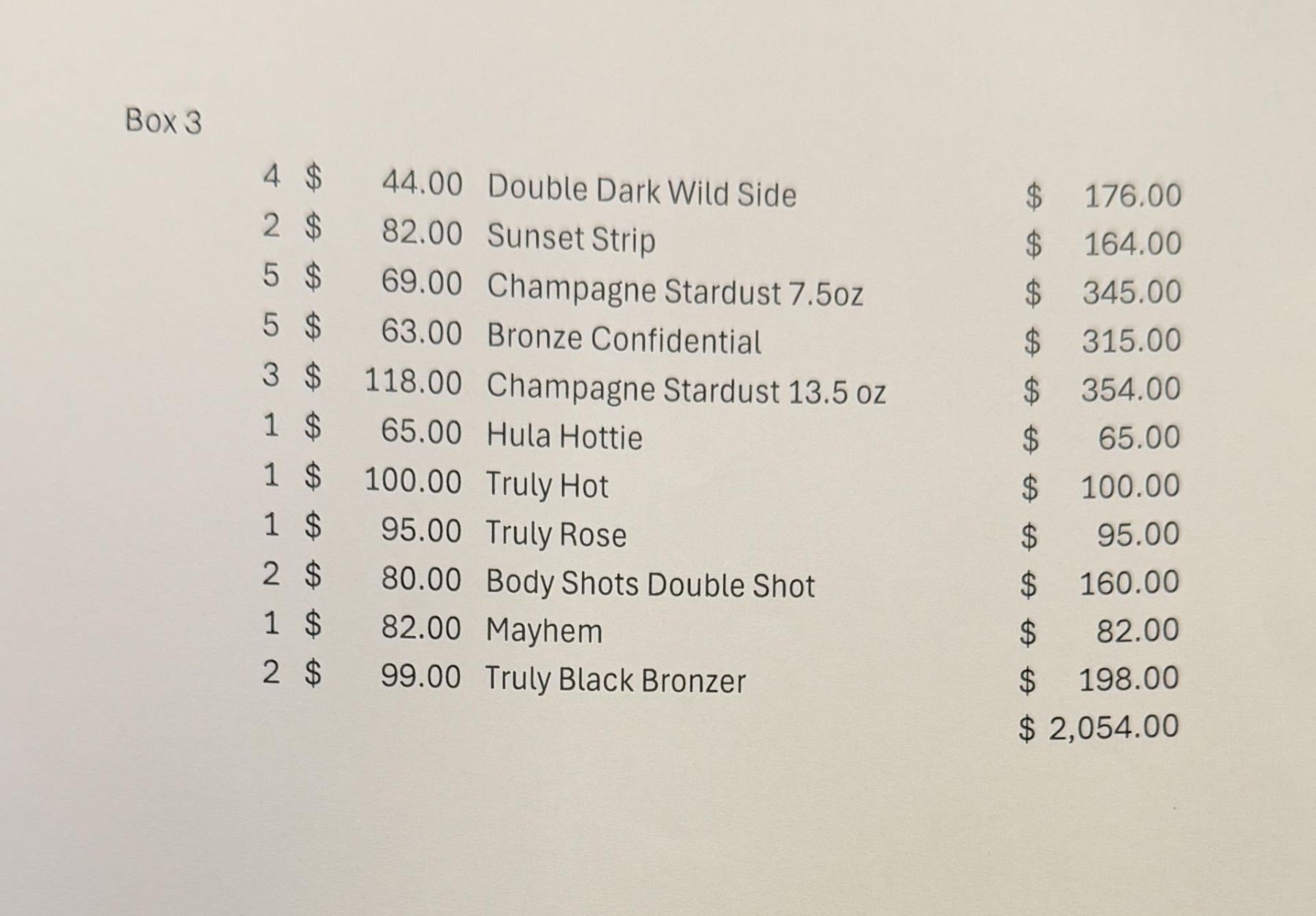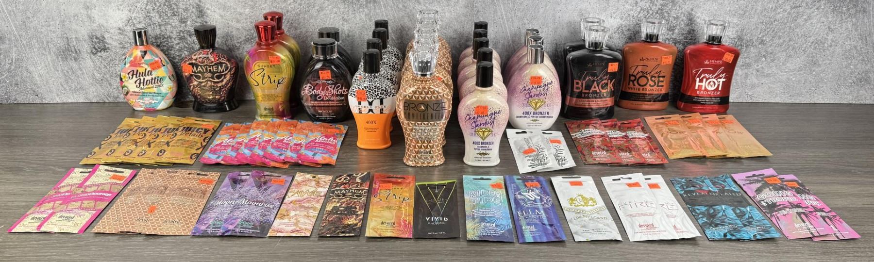 Itemized as shown with original prices. All new/unused. 41 sample packs and 27 bottles.