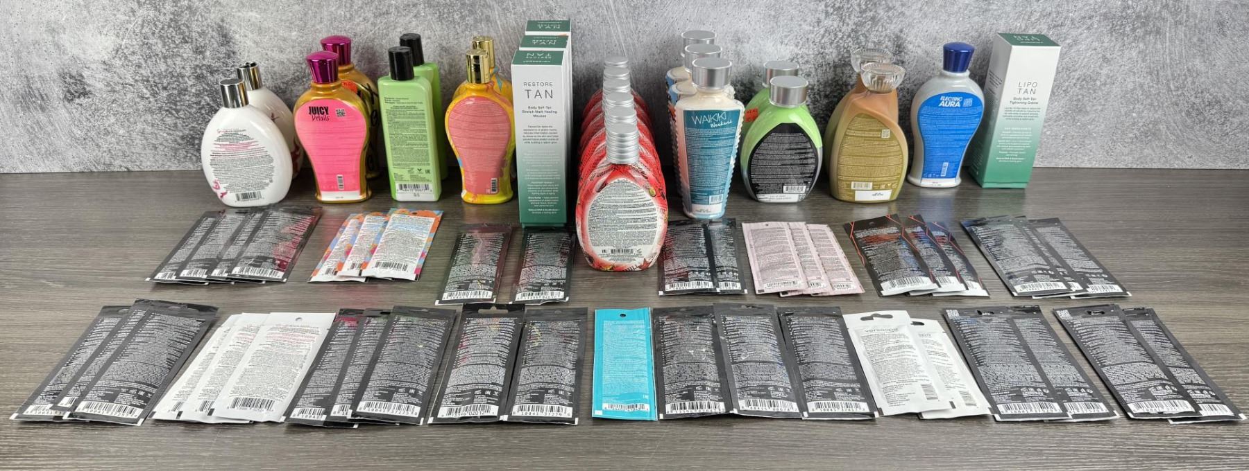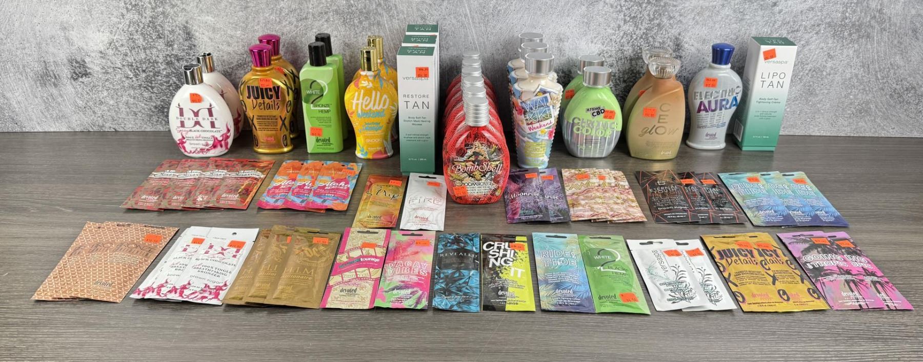 Itemized as shown with original prices. All new/unused. 41 sample packs and 26 bottles.
