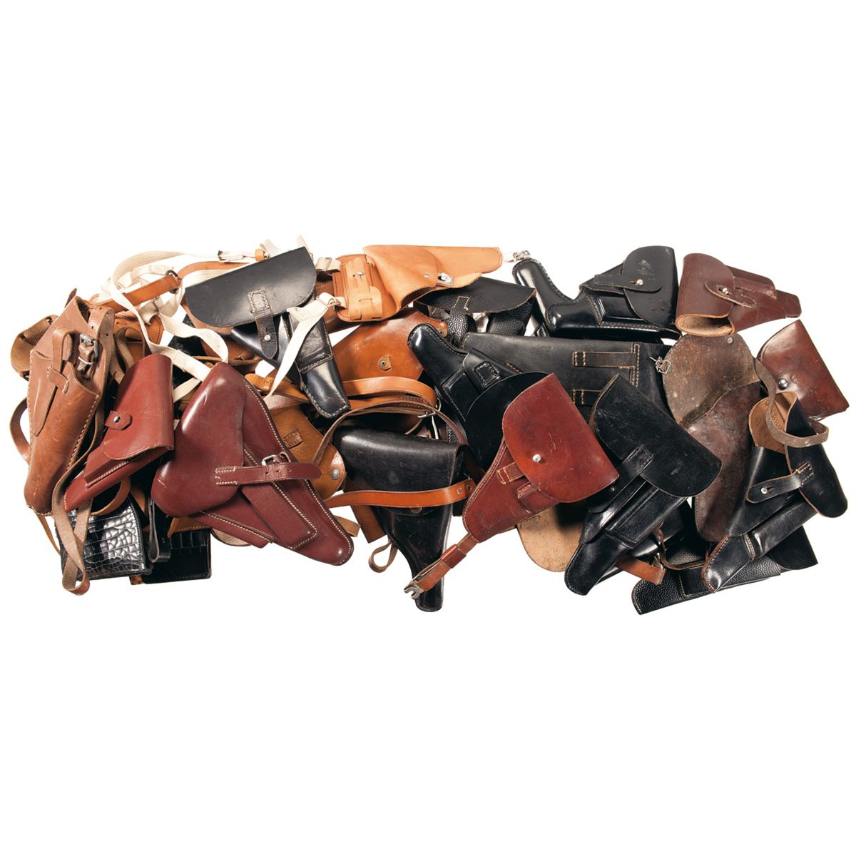 Approximately 39 holsters, 2 cartridge carriers and 10 shoulder holsters.