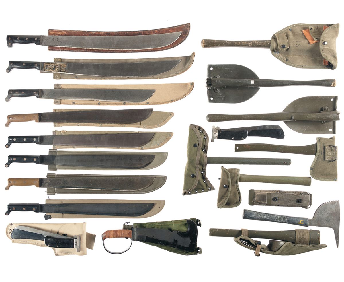 Large Grouping of U.S. Machetes, Hatchets and Entrenching Tools