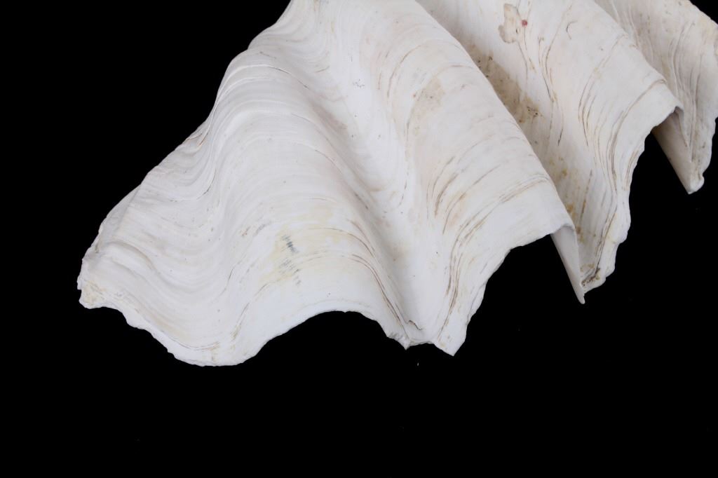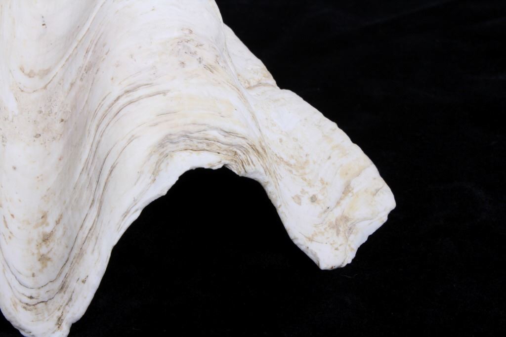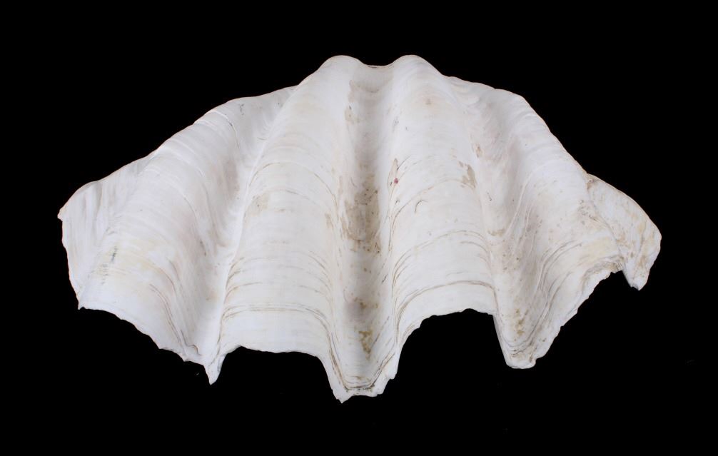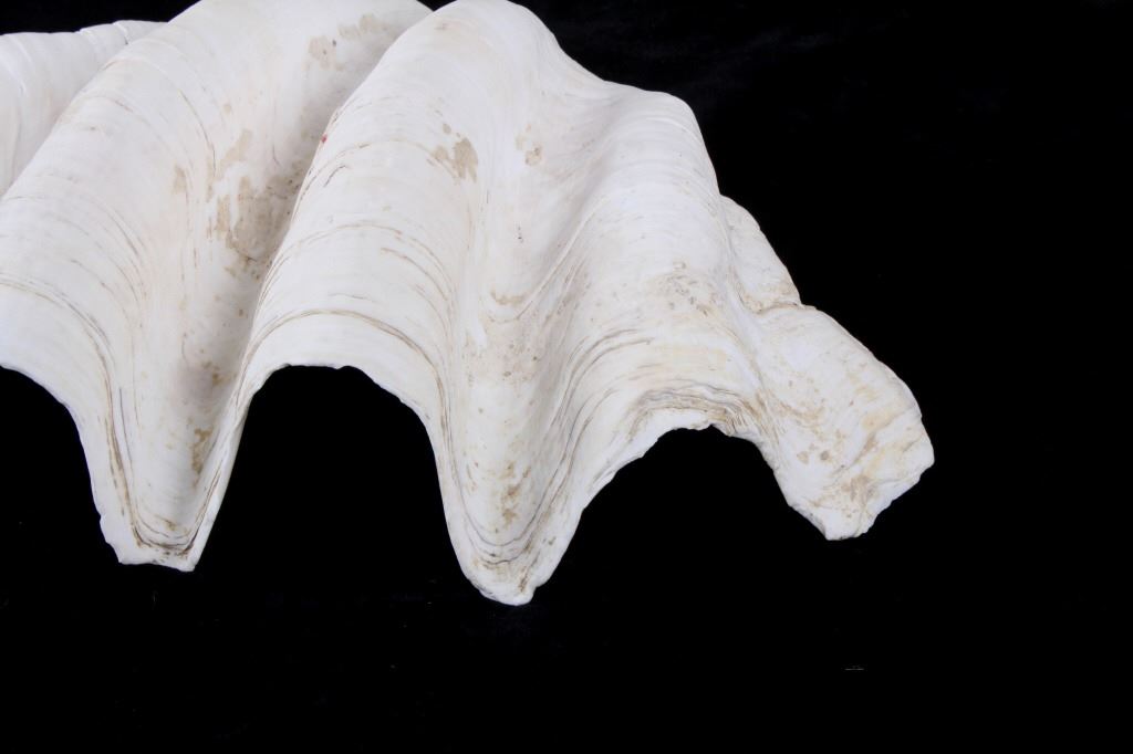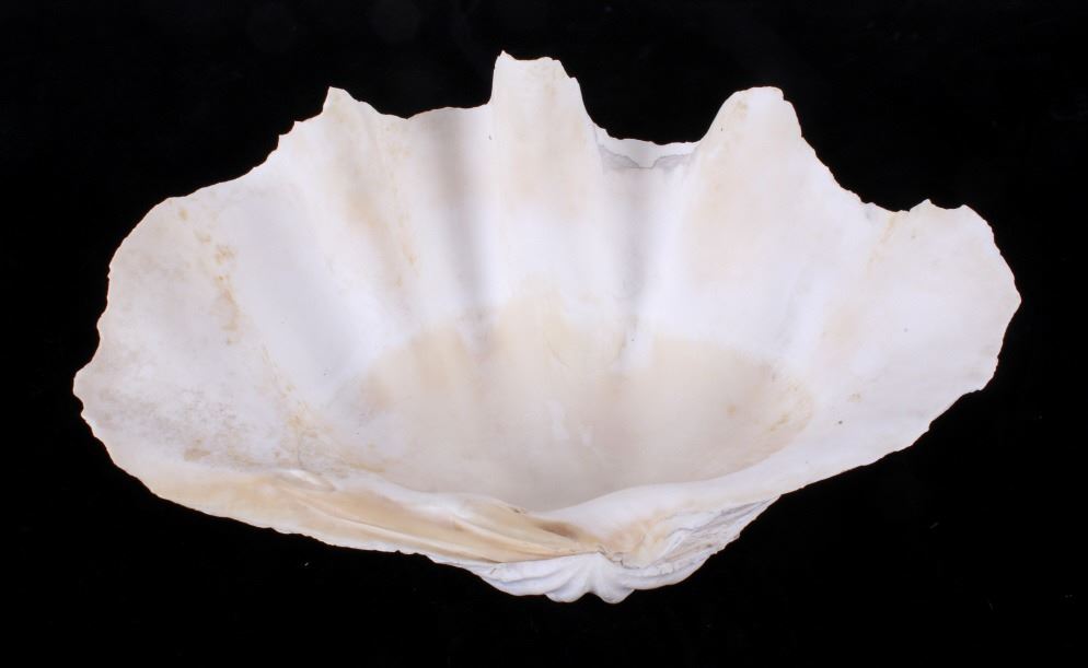 Available for your bidding pleasure is this Large Half China Clam Shell. A clam is a marine bivalve mollusk. The shell consists of two halves which usually share the same size. This lot gives you the opportunity to bid on half of that shell. This shell shows excellent condition with no chips. It measures 17" long by 9 1/2" wide and 8" tall.