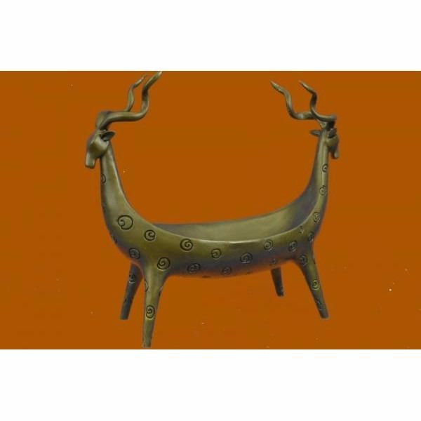 Add some flair to your home or garden with this beautiful Rams Head Sculpture dish or planter. Beautifully crafted to show off these majestic animal, the detail in this sculpture is absolutely astounding. Made from 100% real Bronze, this sculpture can withstand the tests of time as well as any weather conditions, allowing you to enjoy it for years to come. Warning though, expect to be the envy of the garden club when you add this special addition, because you are sure to attract some attention. The handmade bronze sculpture was molded using the ancient method of lost-wax casting and finished with a brown patina finish for preservation. It is signed by artist Dalo Condition: This sculpture is in perfect condition. Bronze Dimensions :Height 15.5" x Width 17.5" Weight : 17 LBS Inventory 47YDW18911974