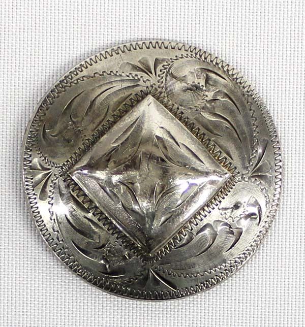 Large Hanson Western Gear Silver Plate Concho, measures 1.75''D, hallmarked HWG