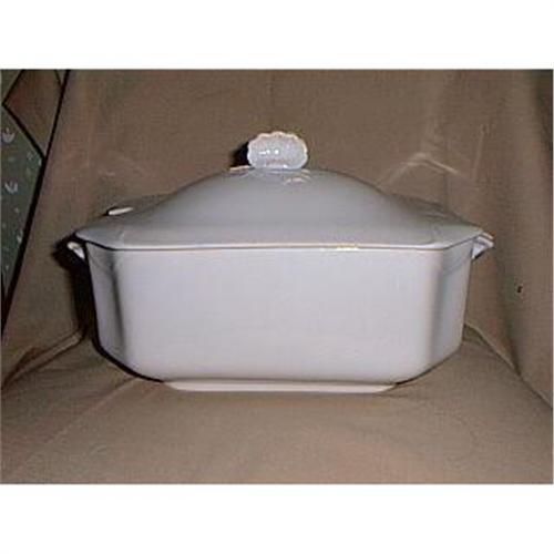 Very hard to find soup tureen by Haviland & Company, Limoges, France. This is a very early piece in the napkinfold blank with shell-like handles, circa 1870s. It's always a wonder to see a beautiful piece like this in such excellent condition. Only a small black dot that happened during the firing process mars this beauty. This happened frequently in the early days when they had to use coal and wood to heat the kilns. Tureen measures 10" long by 7" wide by 4.25" high, not counting the handles.